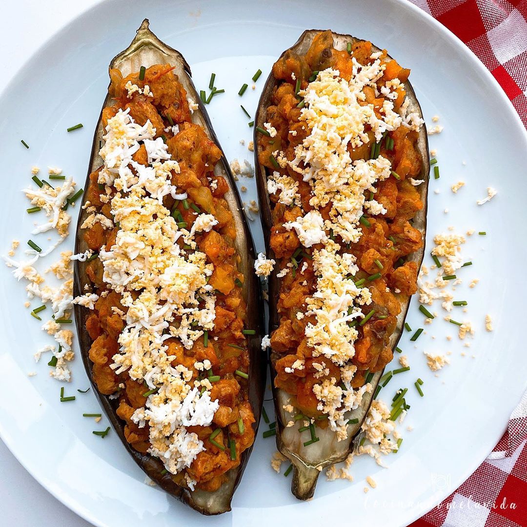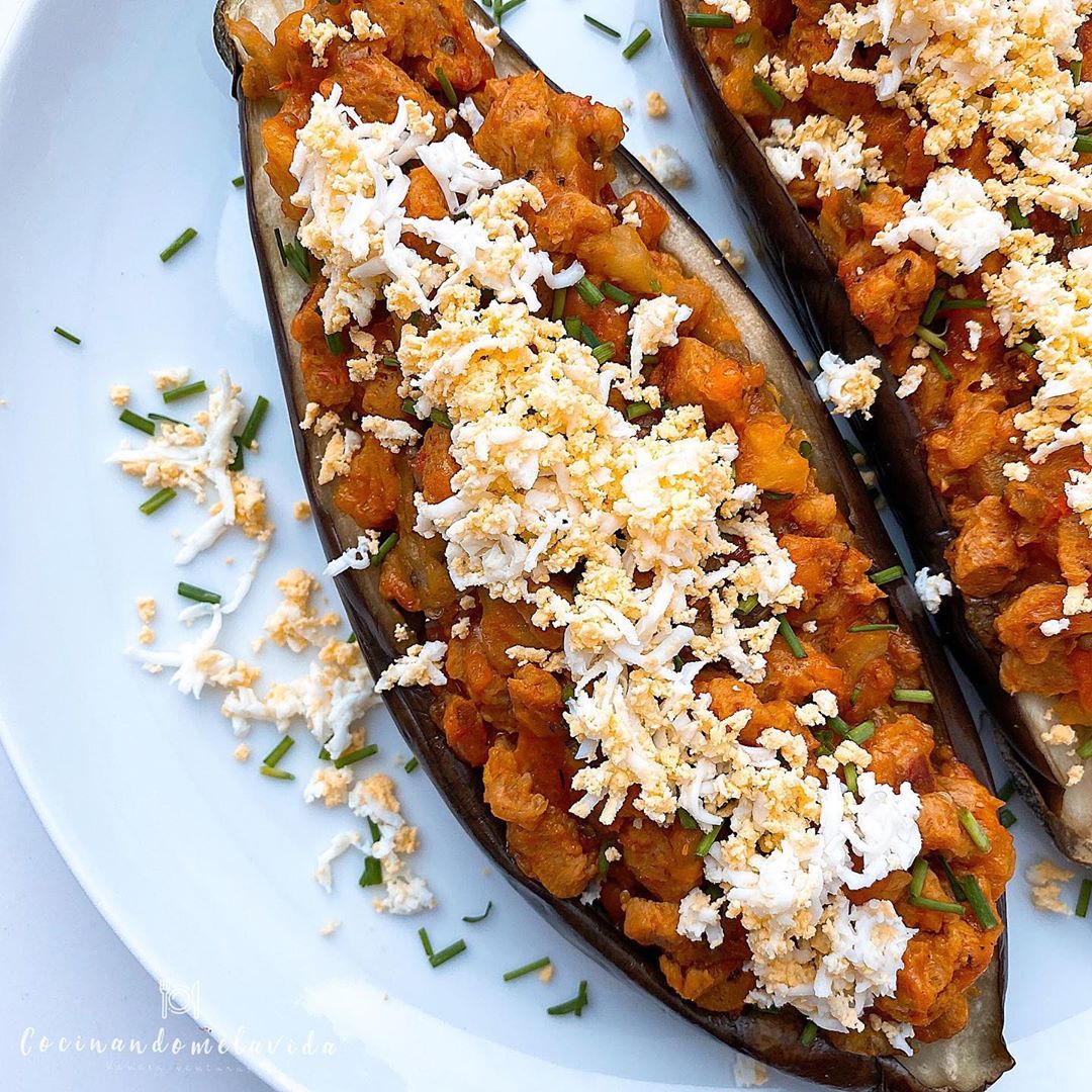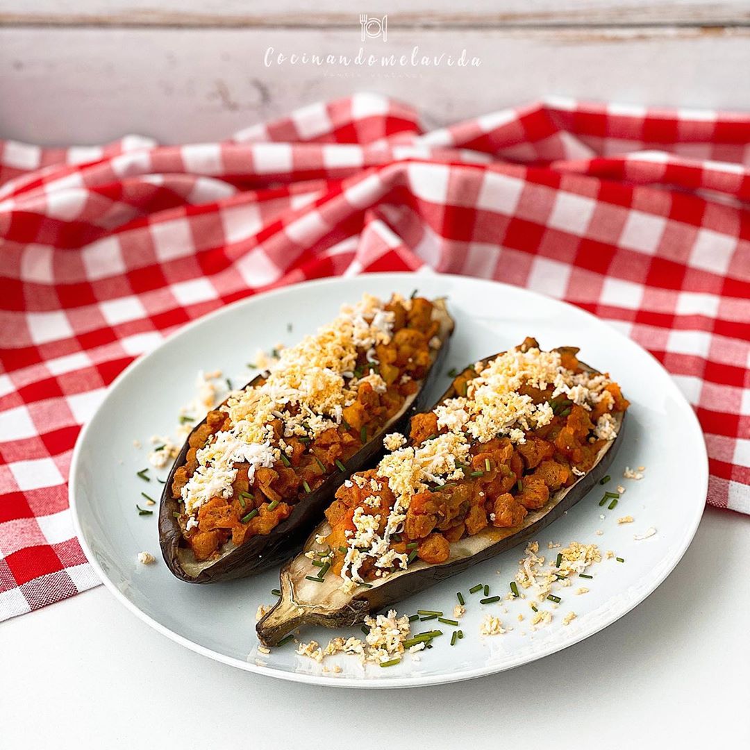BERENJENAS RELLENAS DE BOLOÑESA DE SOJA TEXTURIZADA