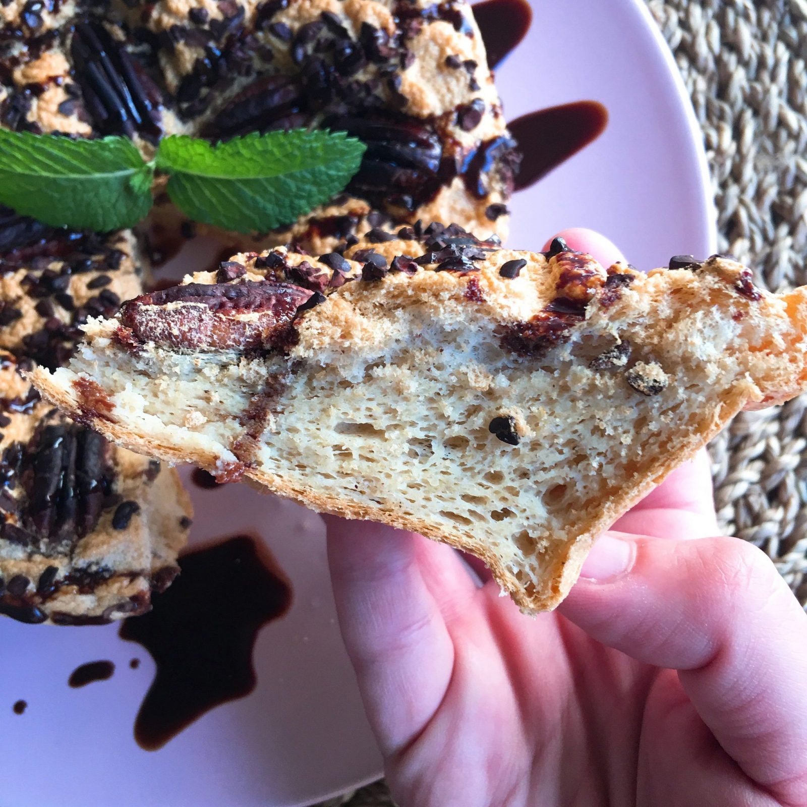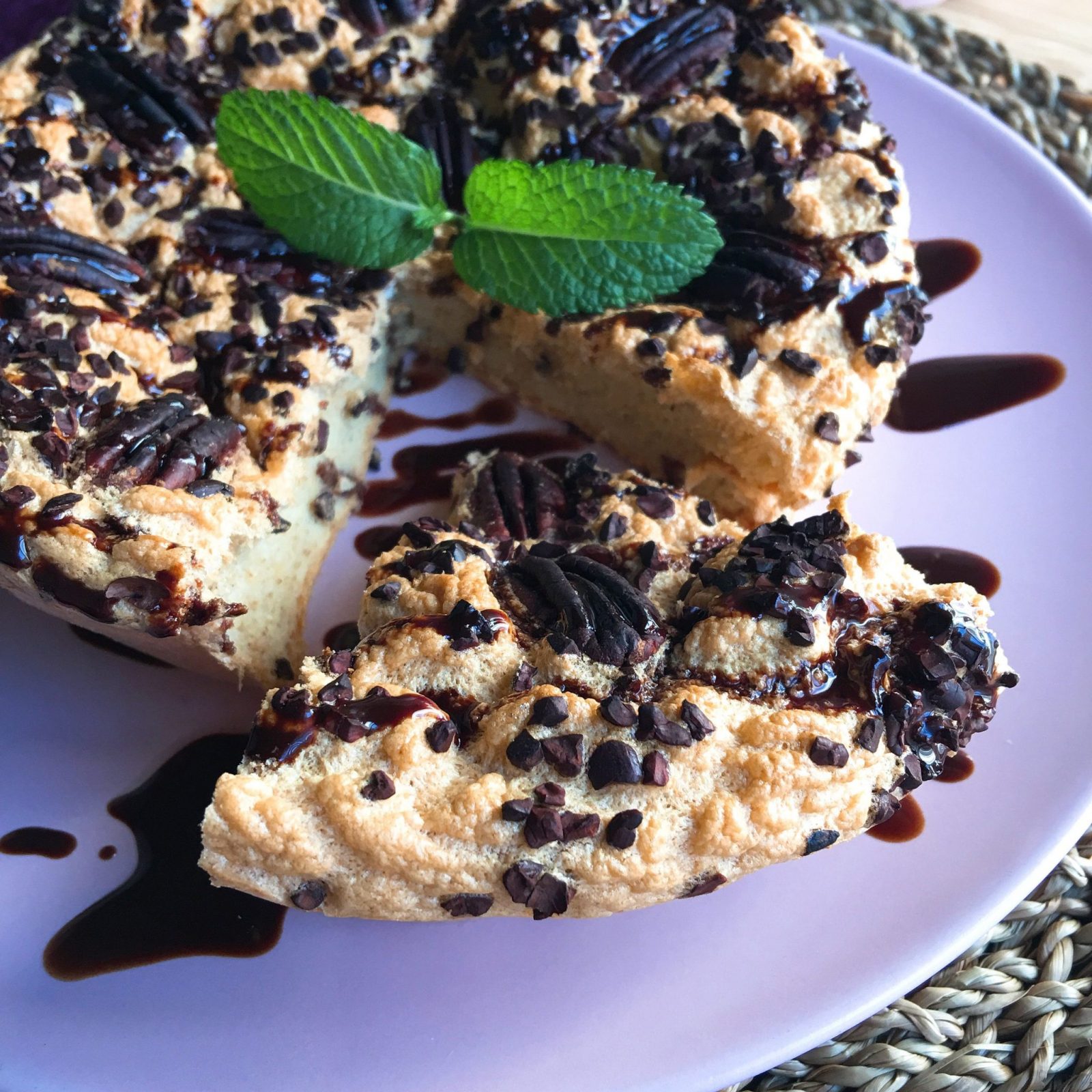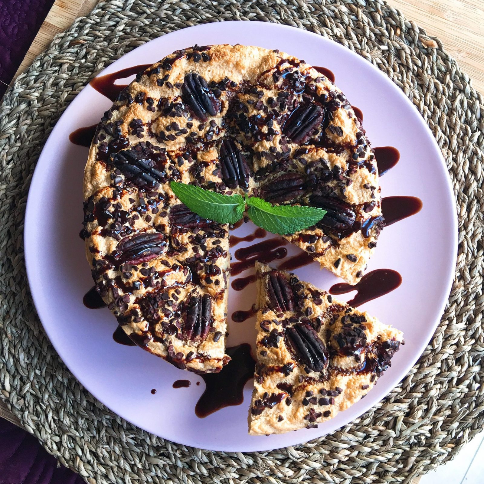 - Ponemos de topping los granos de cacao y las nueces de pecan.