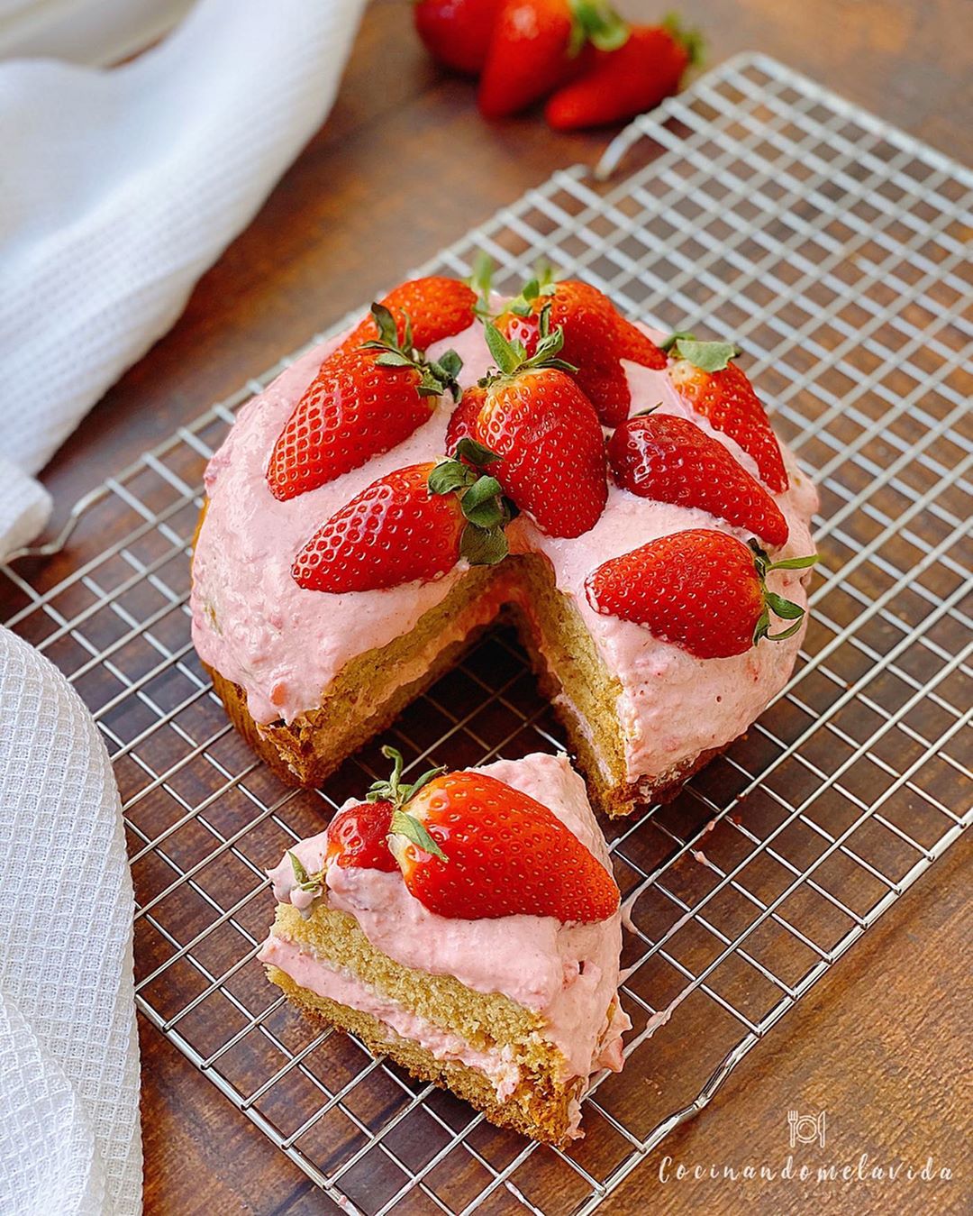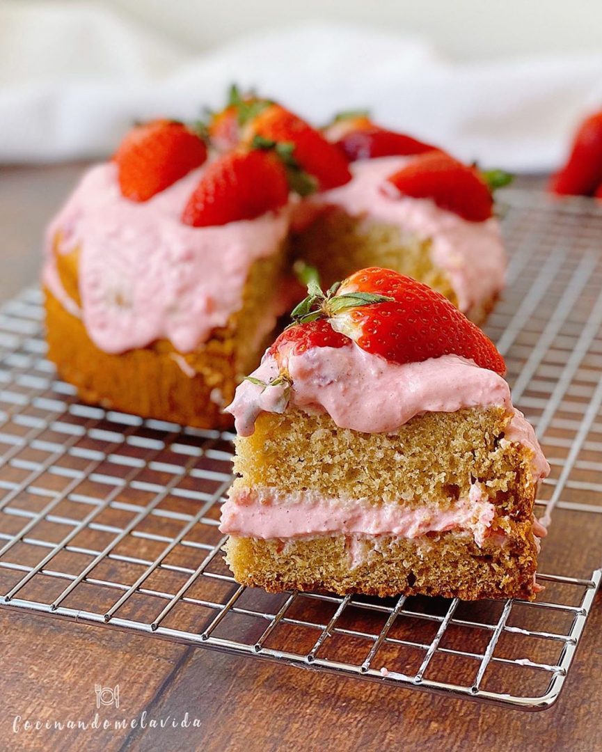 - ¡Listo! Ya podemos disfrutar de nuestro BIZCOCHO DE FRESAS Y YOGUR SIN GLUTEN Y SIN AZÚCARES AÑADIDOS