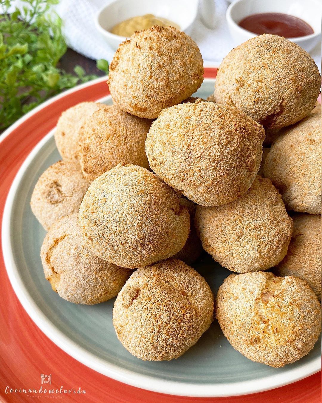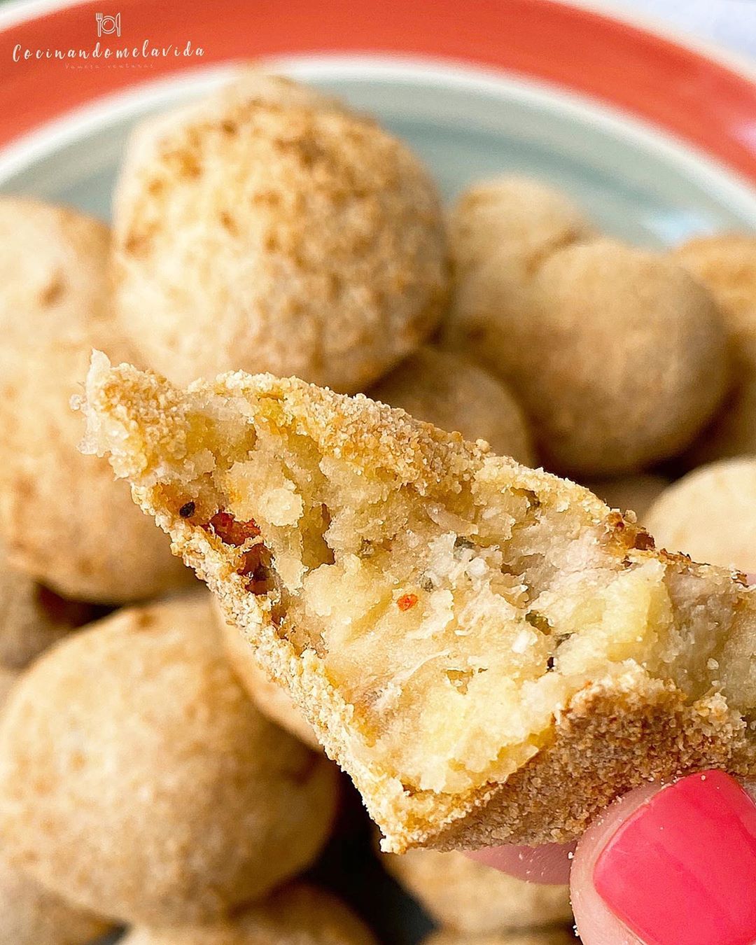 - Cuando la masa esté lista damos forma de bolitas y las pasamos por huevo y pan rallado.