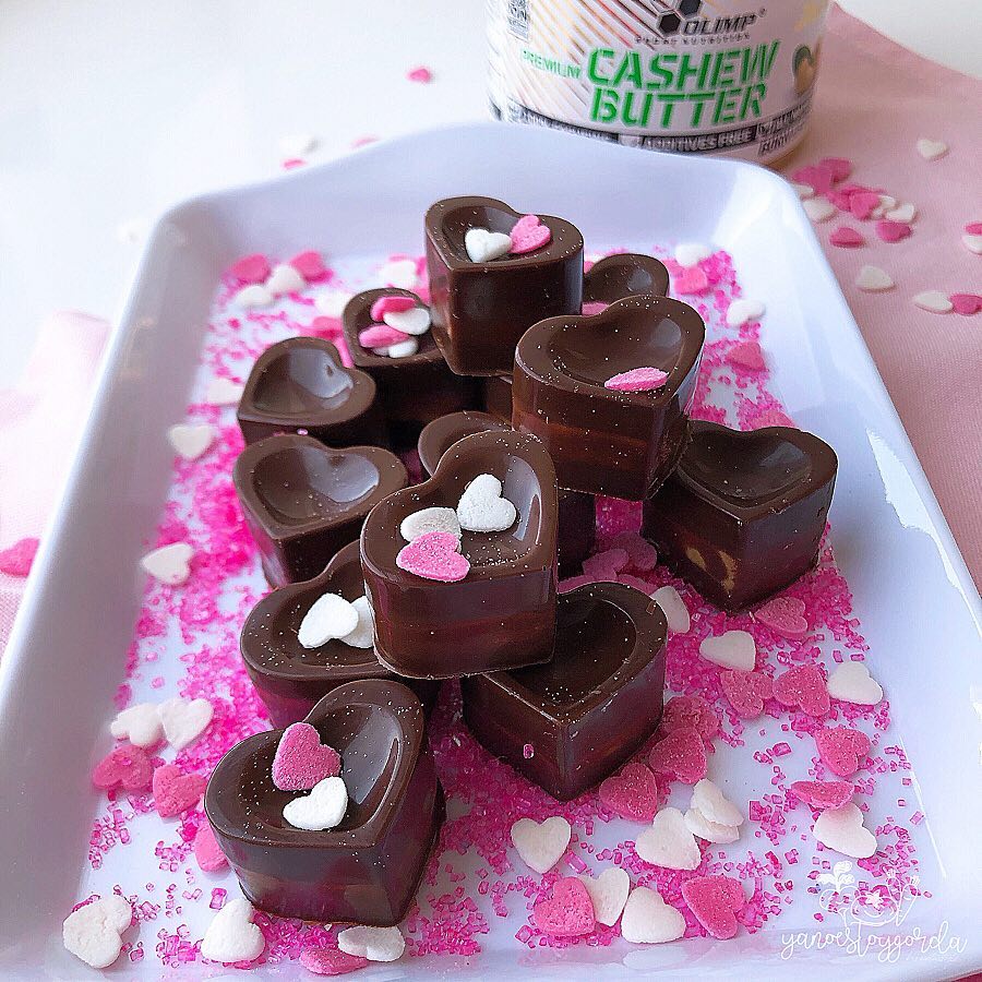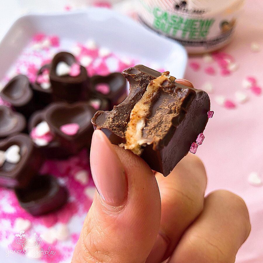 Bombones de cacao rellenos de manteca de anacardos