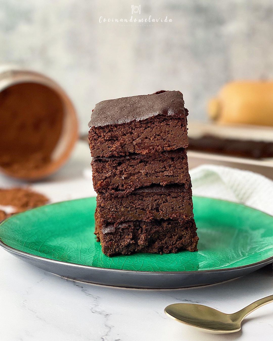 BROWNIE DE CALABAZA Y ALMENDRA CON SIROPE DE CHOCOLATE SALUDABLE