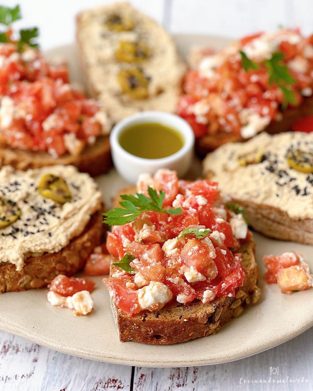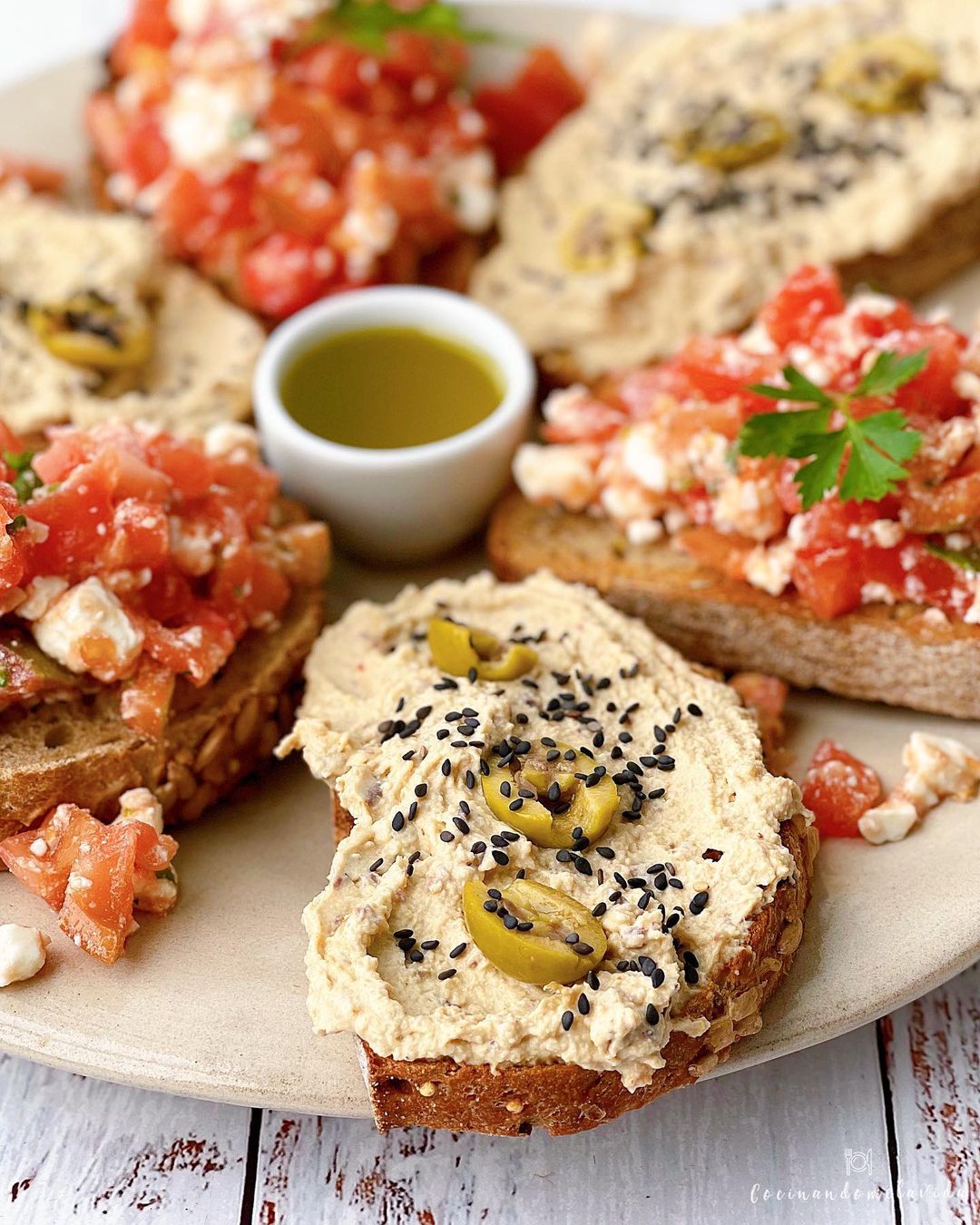 - ¡Listo! Ya tenemos nuestras BRUSCHETTAS CON HUMMUS DE ALCAPARRAS