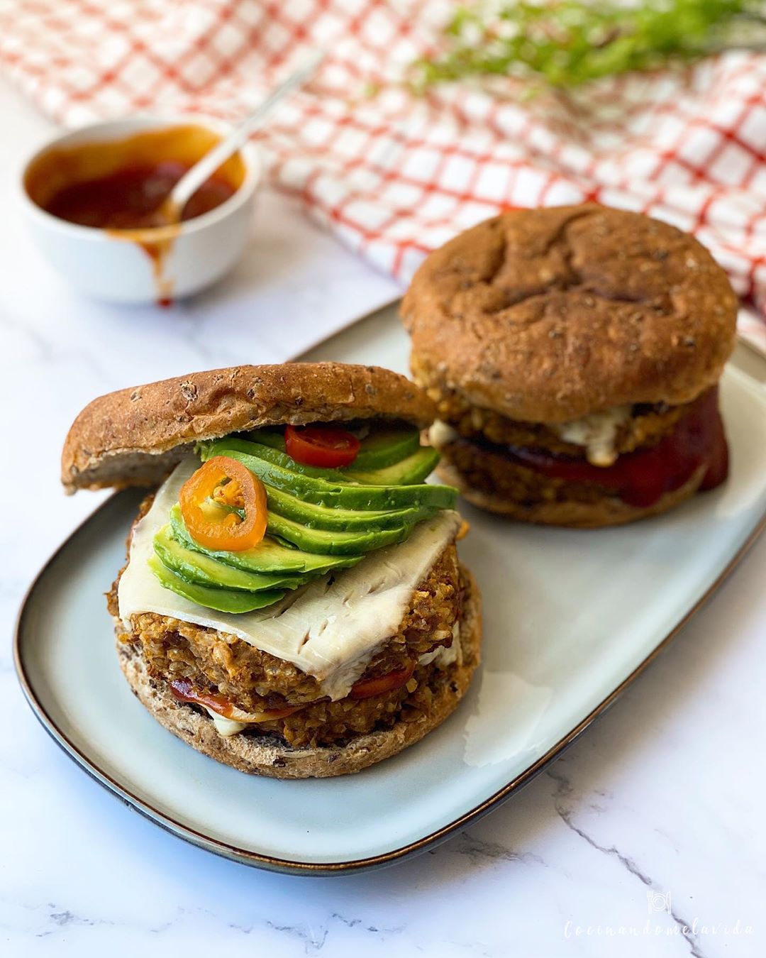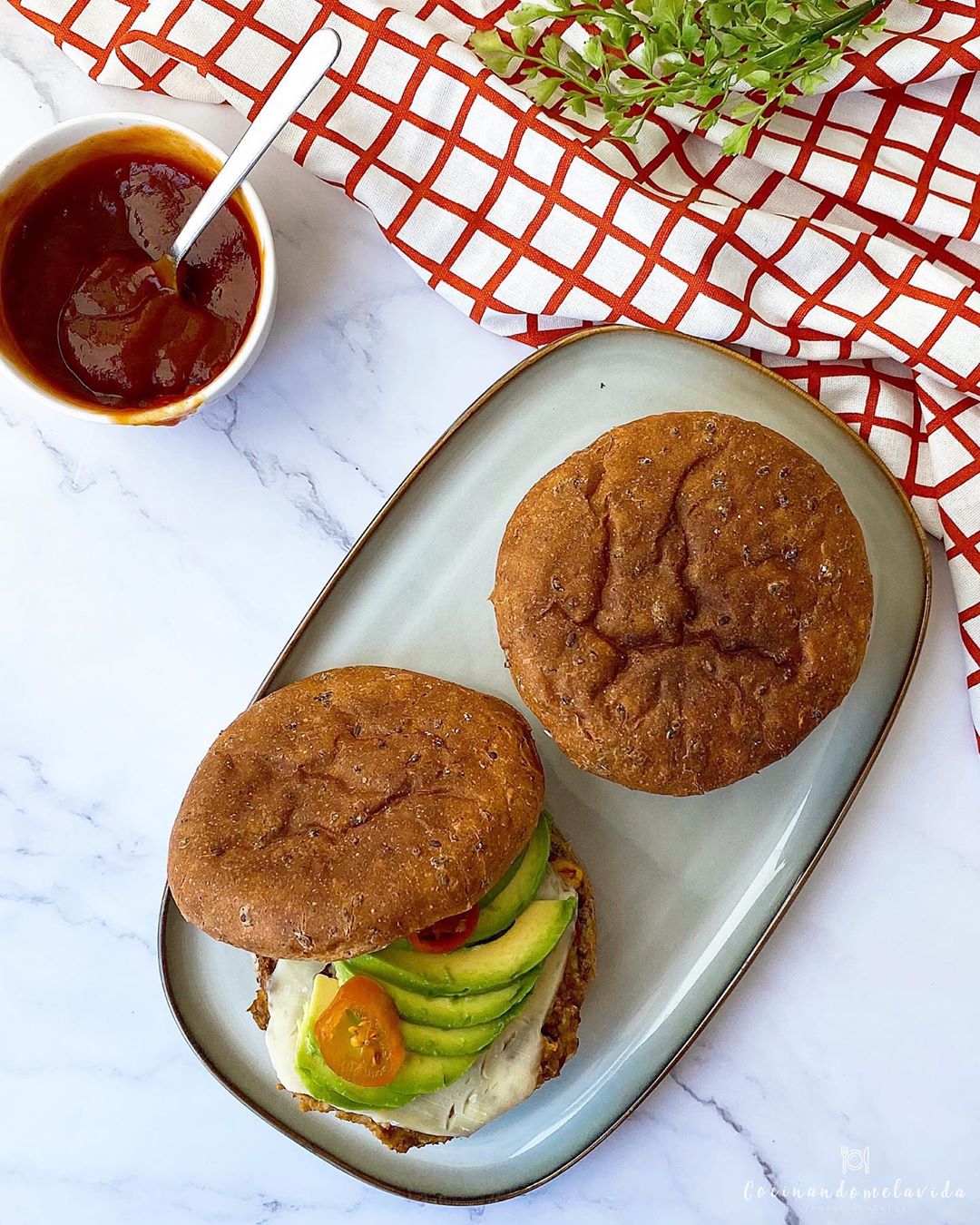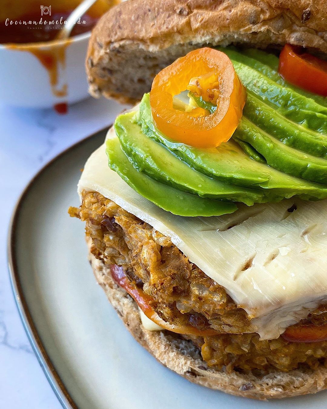 - Una vez cocinadas por ambas caras podemos montar nuestra hamburguesa con su ketchup casero, queso, aguacate, jalapeños y pan (como la mía)