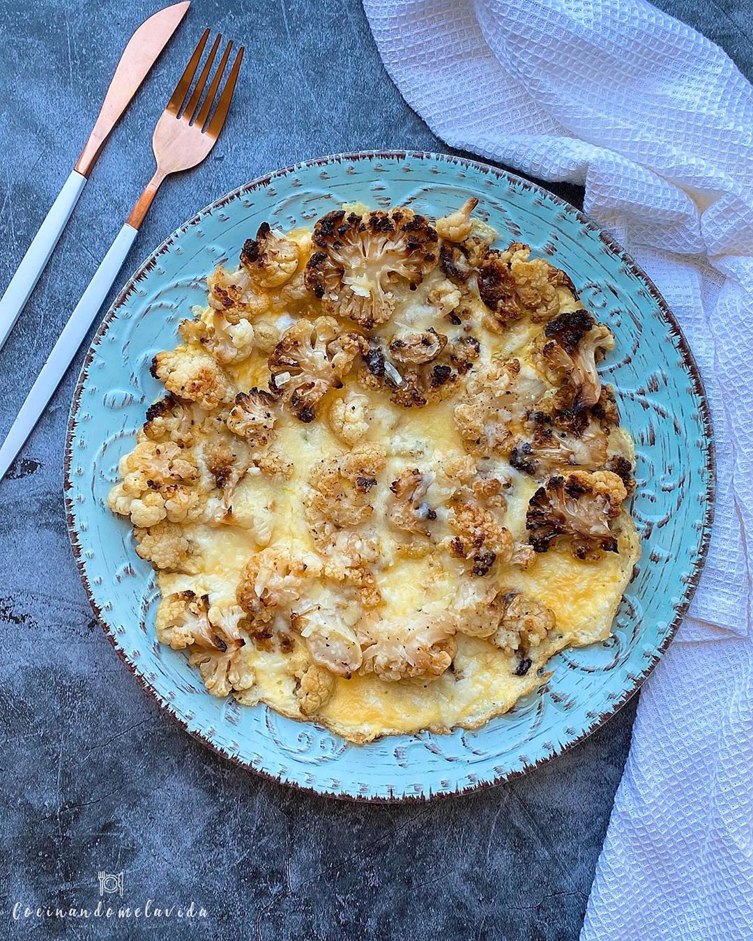 COLIFLOR ASADA CON HUEVOS Y QUESO