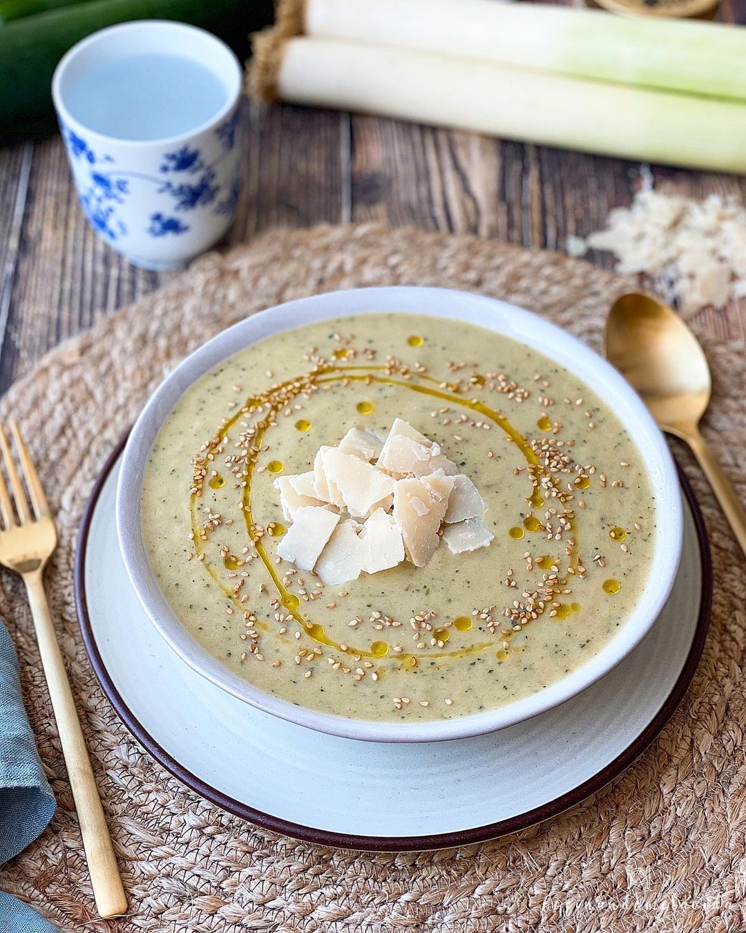 CREMA DE PUERROS Y CALABACÍN CON QUESO