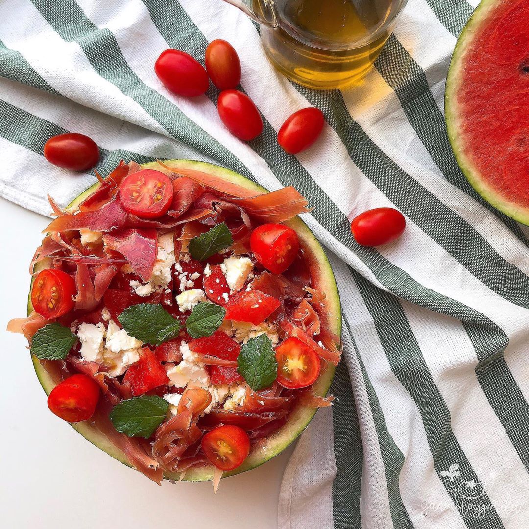 - ¡Listo! Ya podemos disfrutar de nuestra ENSALADA DE SANDÍA, JAMÓN Y QUESO DE CABRA