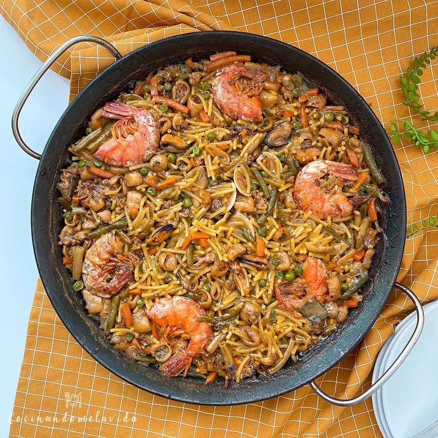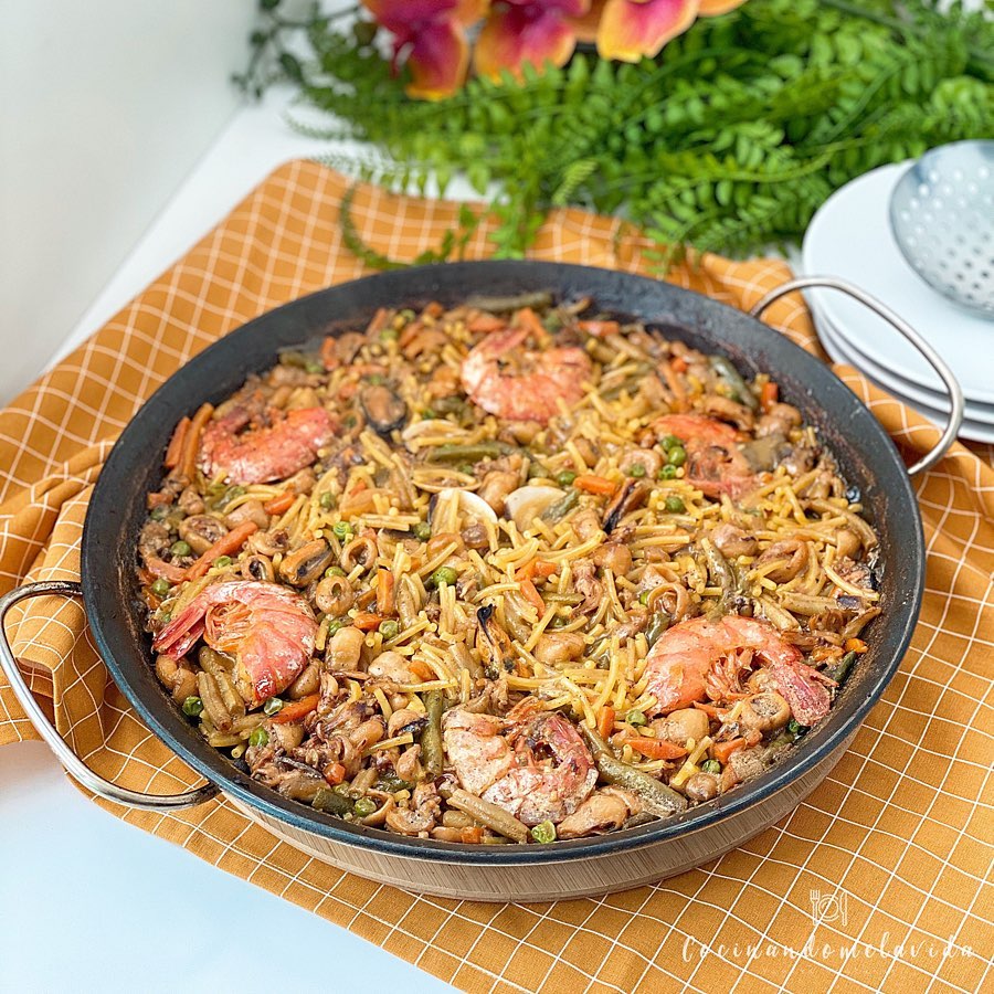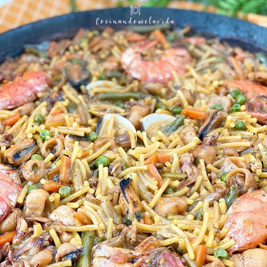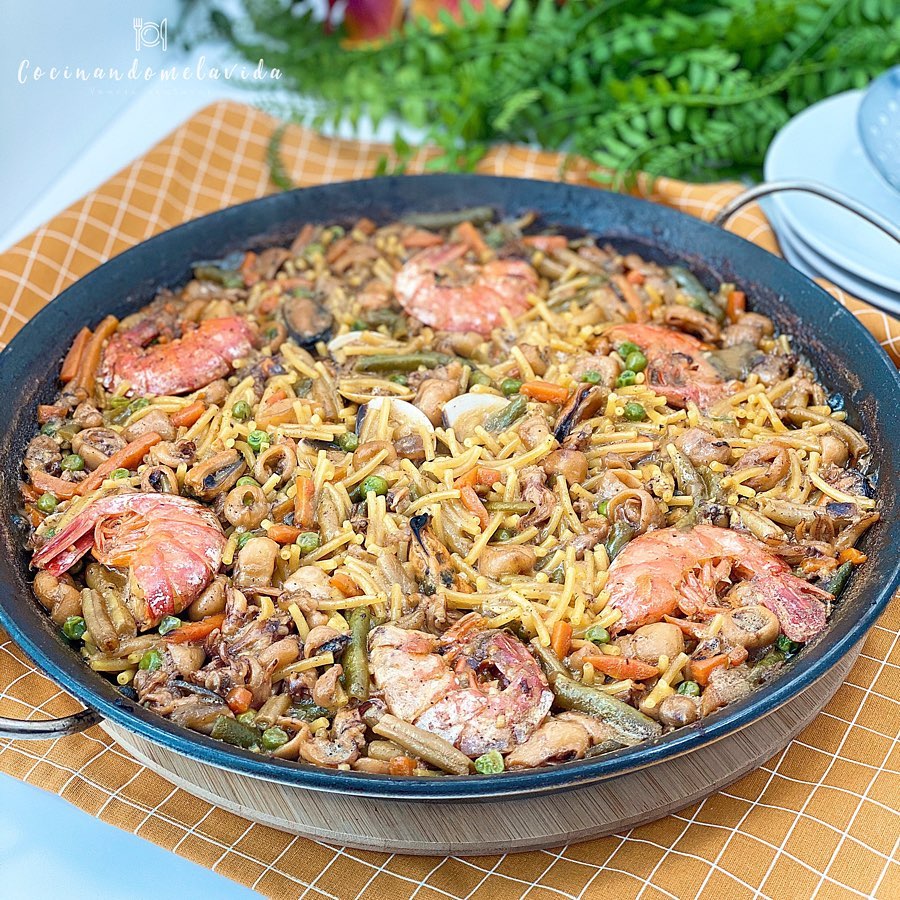 - ¡Listo! Ya podemos disfrutar de nuestros FIDEOS A LA CAZUELA CON VERDURAS Y MARISCO