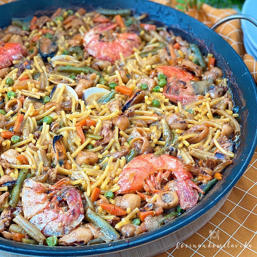 FIDEOS A LA CAZUELA CON VERDURAS Y MARISCO