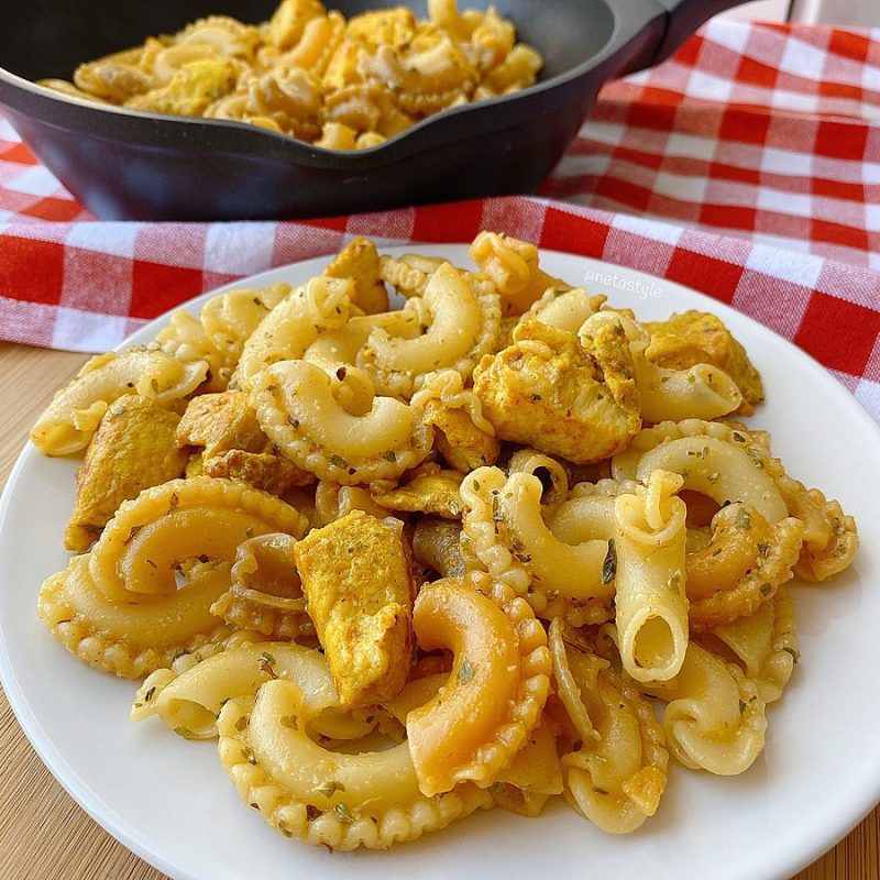 - Incorpora los fideos y la carne, mezcla todo bien.