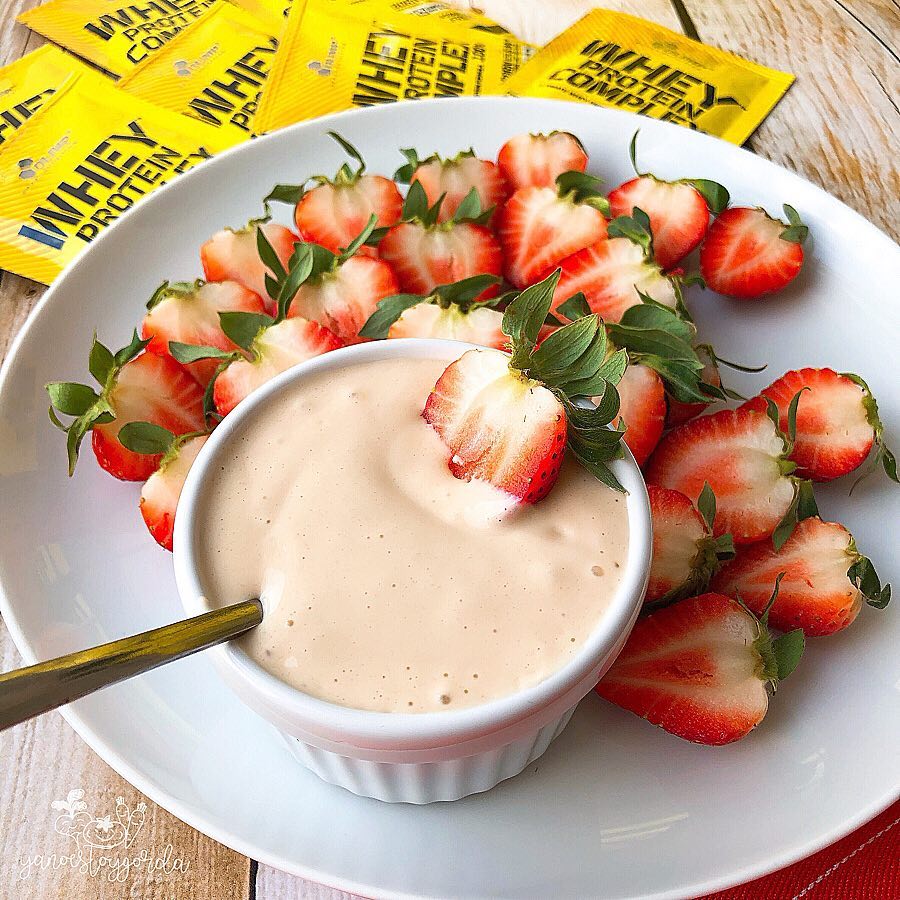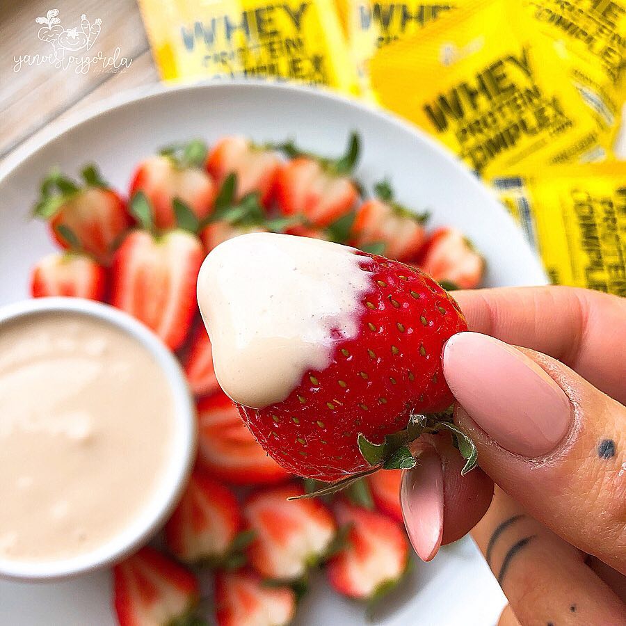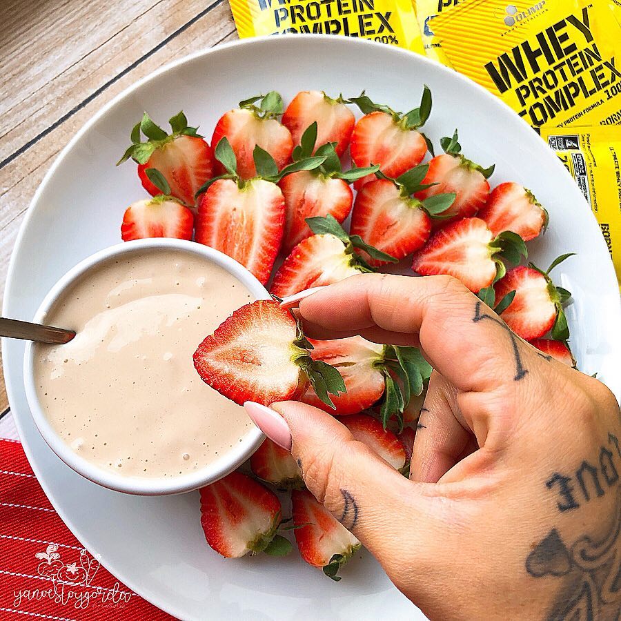 - ¡Listo! Ya tenemos nuestras Fresas con proteína sabor galleta