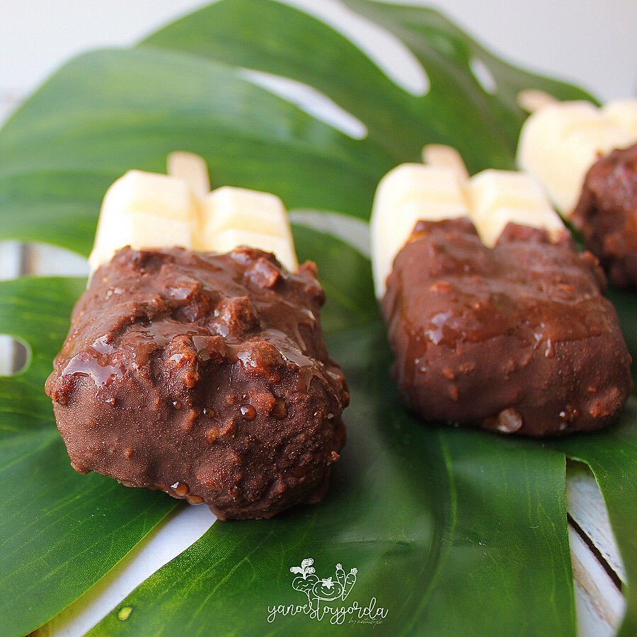 - Mojamos los helados en la mezcla y dejamos escurrir bien boca abajo.