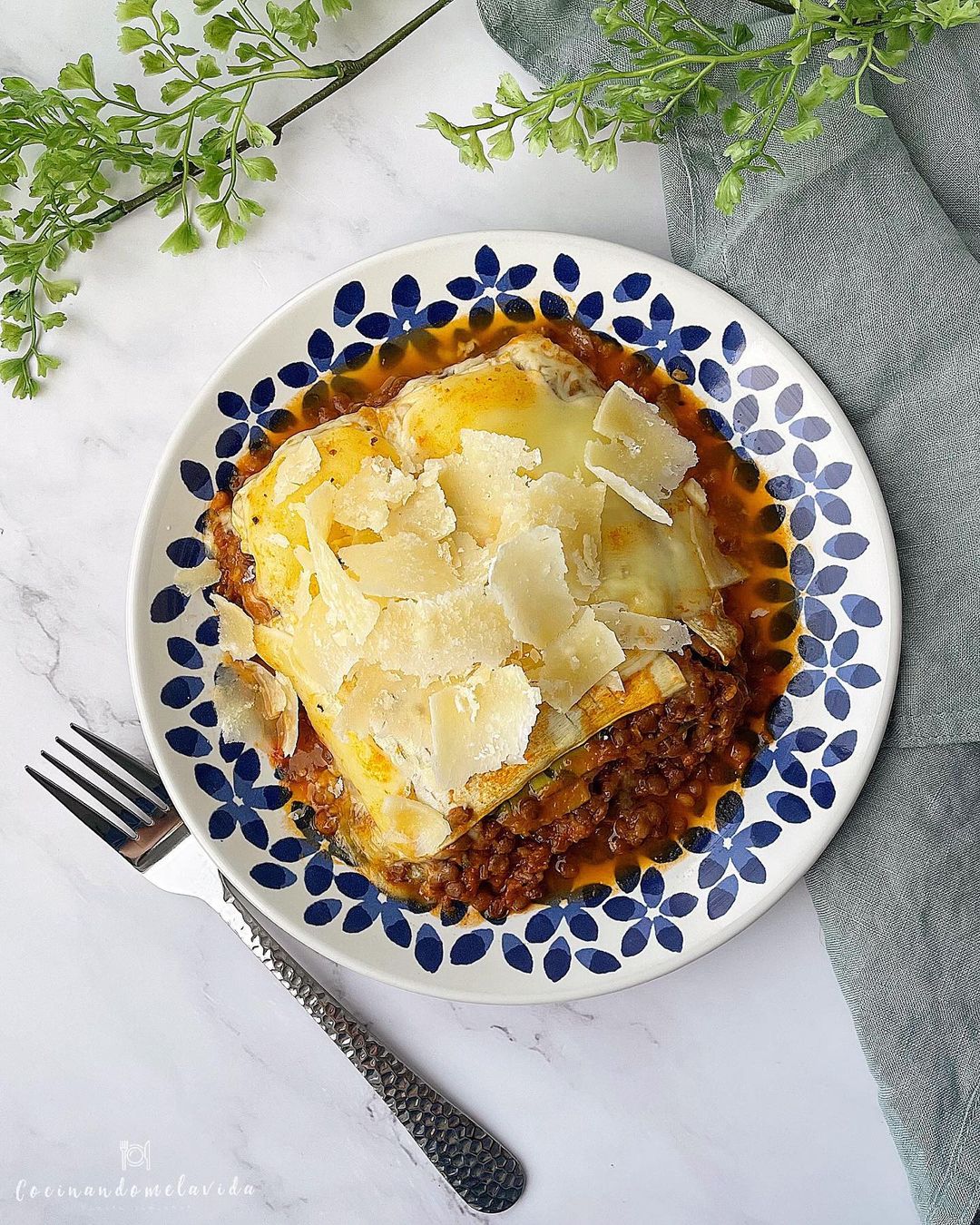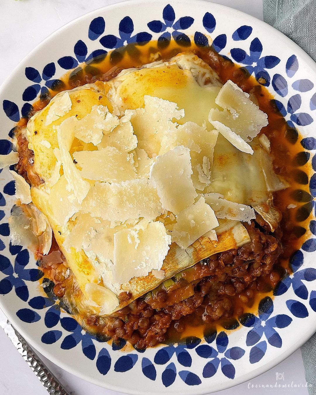 LASAÑA DE CALABACÍN CON BOLOÑESA DE LENTEJAS