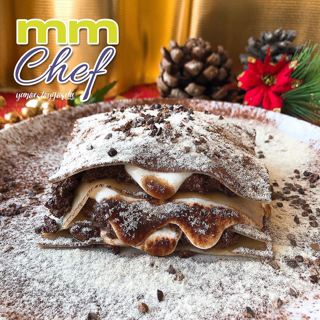 - Montamos la lasaña, lámina, untamos de chocolate y ponemos yogur griego.
