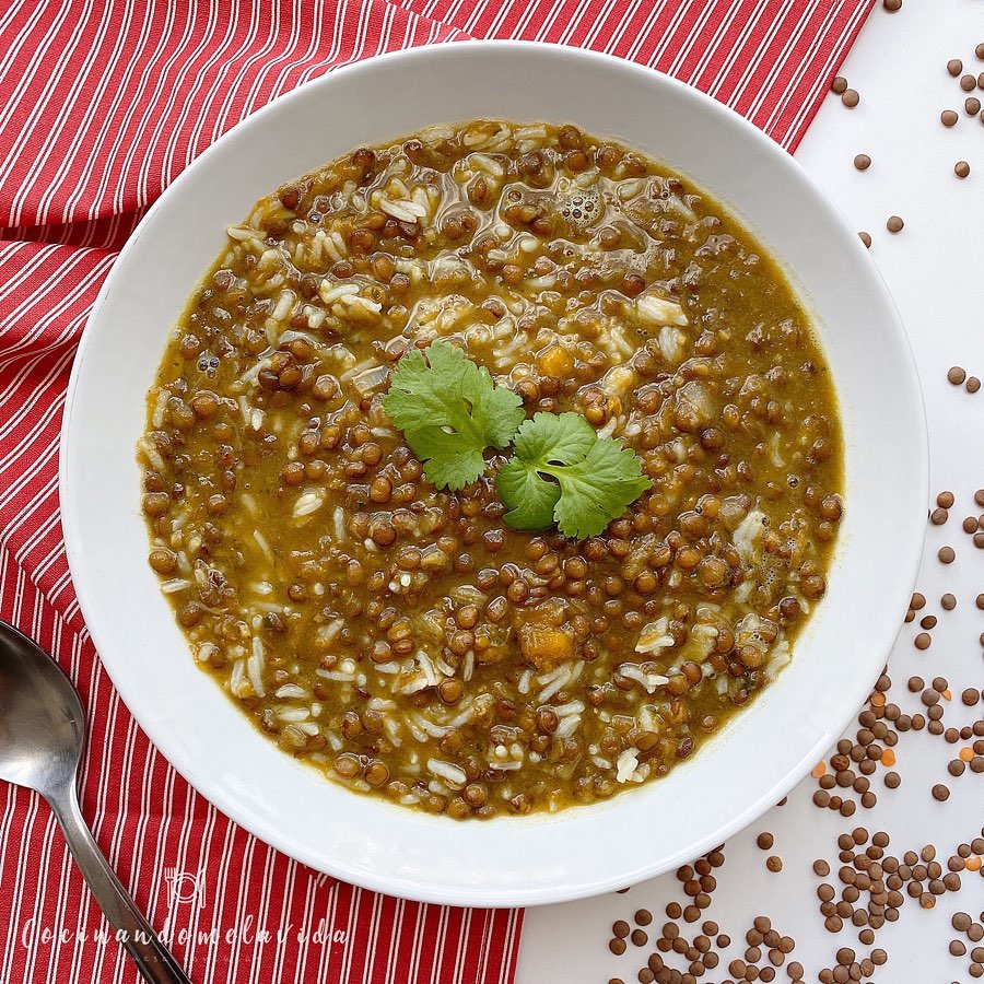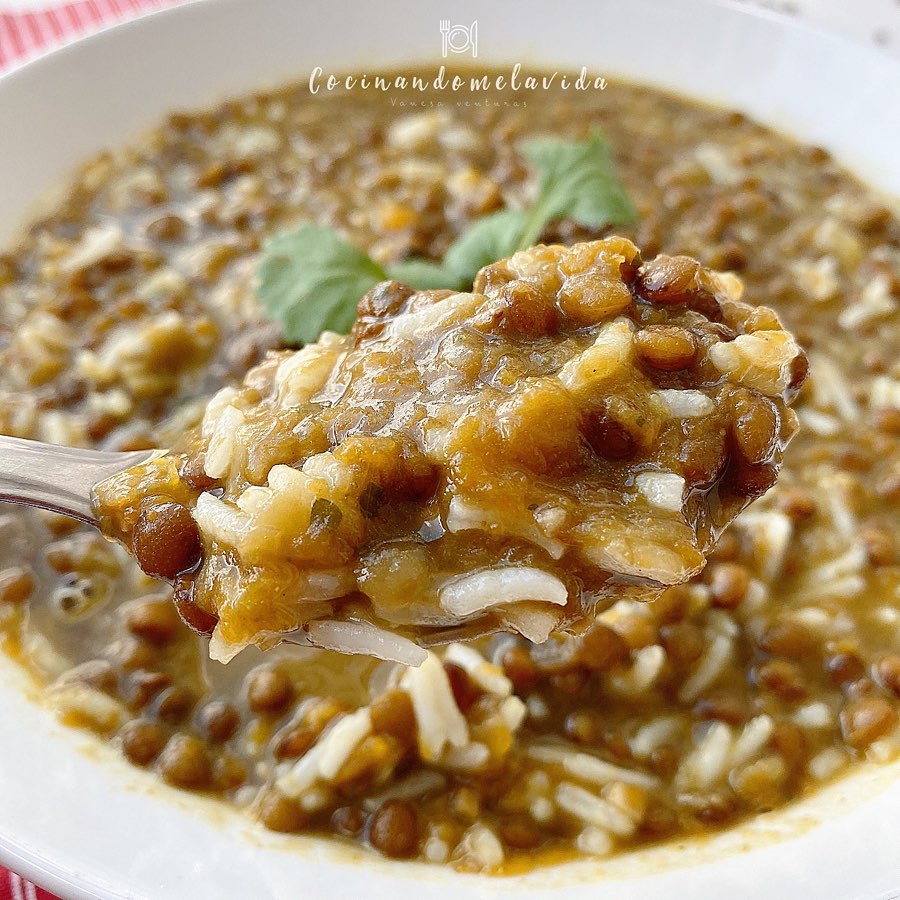 - Una vez apagadas las lentejas, añadimos el arroz y servimos.