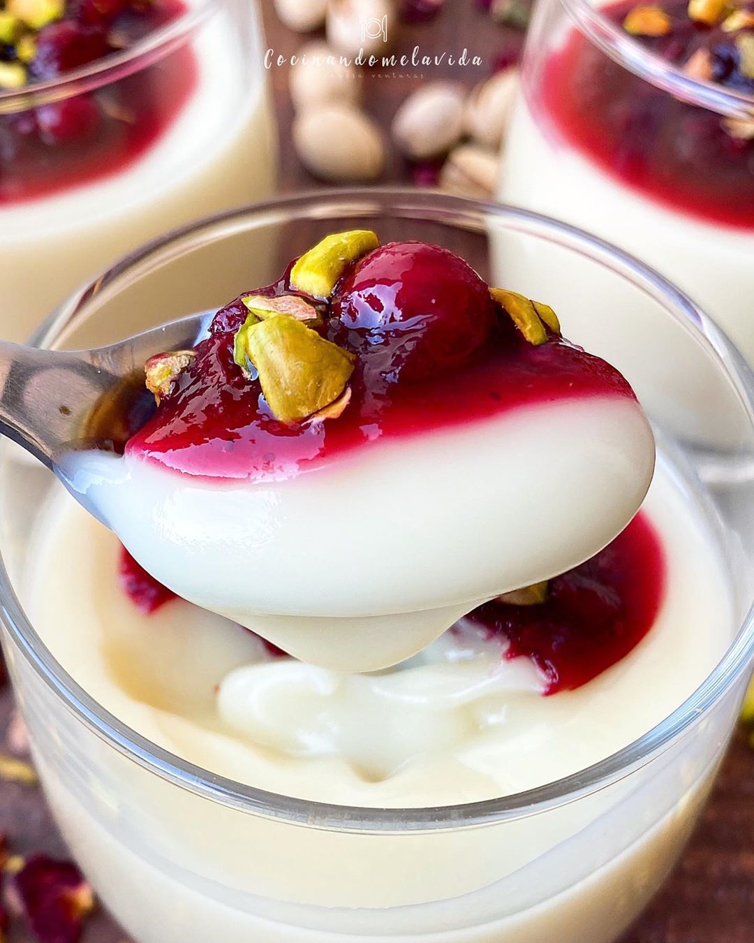 - Servimos el sirope por encima junto a unos pistachos picaditos.