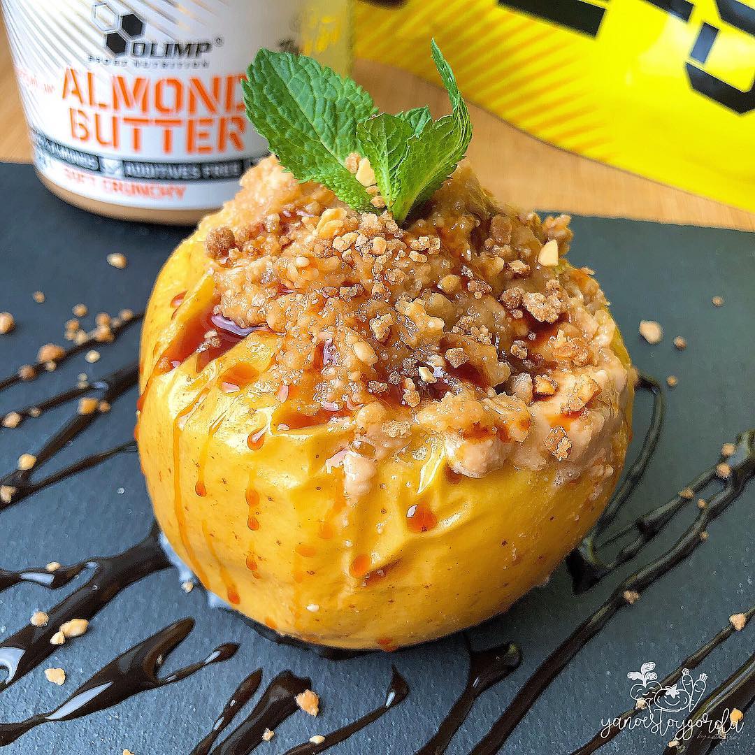Manzana asada con manteca de almendras