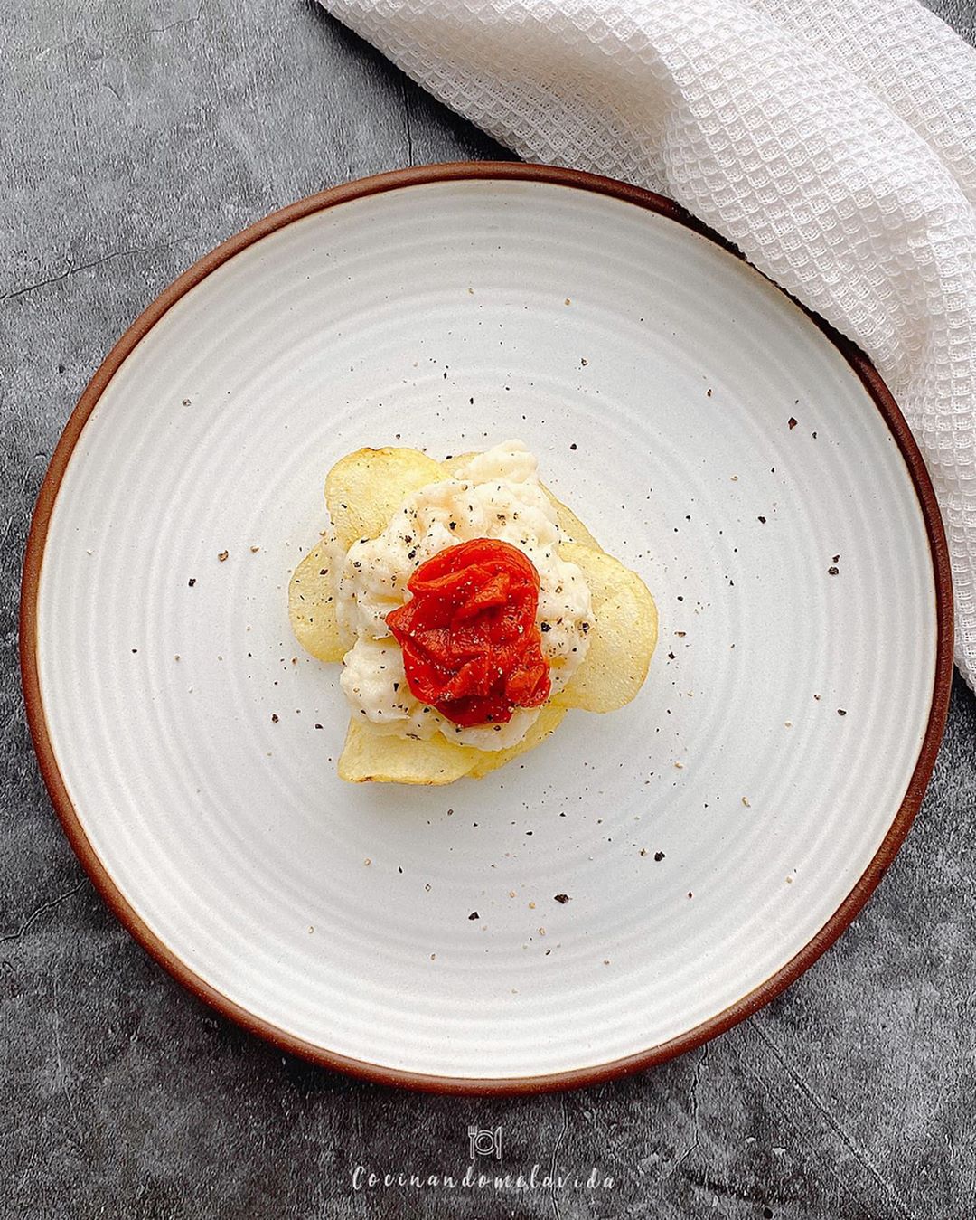 - ¡Listo! Ya podemos disfrutar de nuestros MILHOJAS DE BRANDADA DE BACALAO CON CHIPS