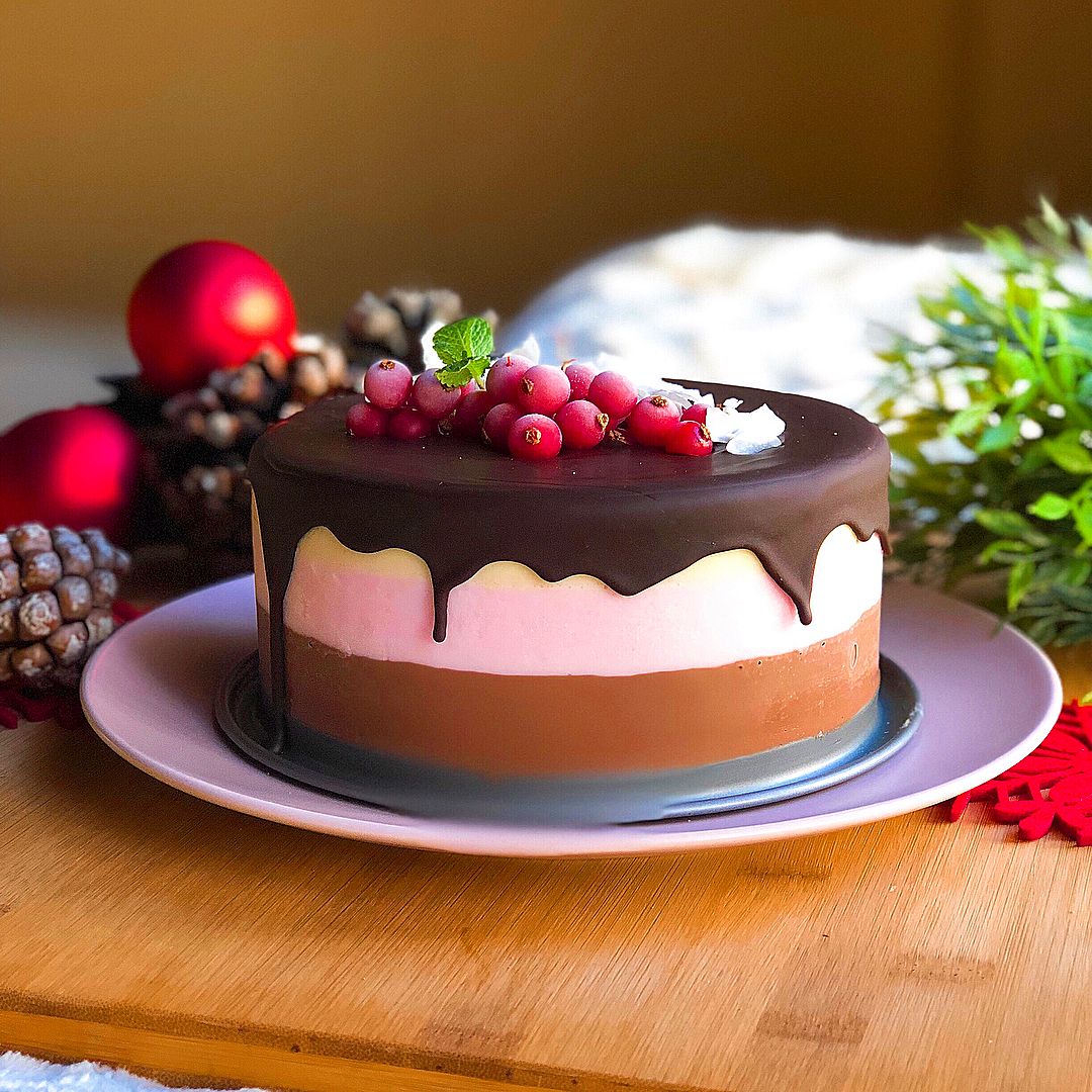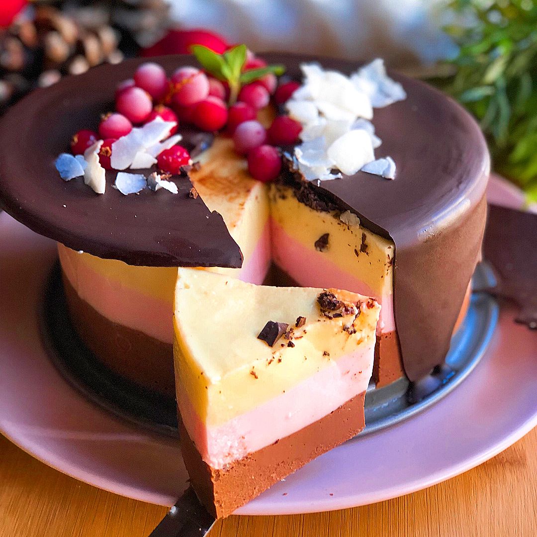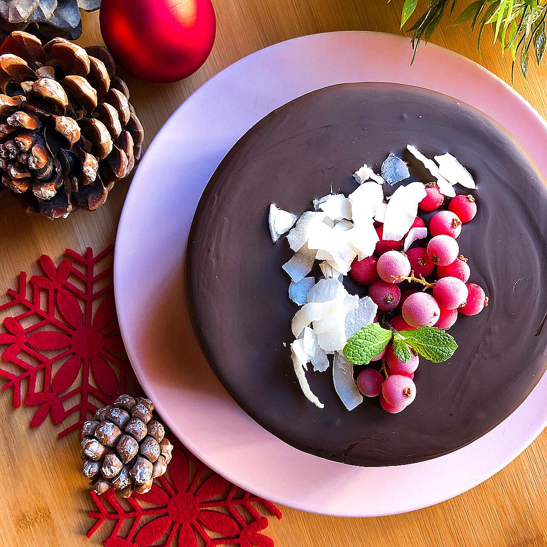 Mousse cheesecake de cacao, frambuesas y vainilla