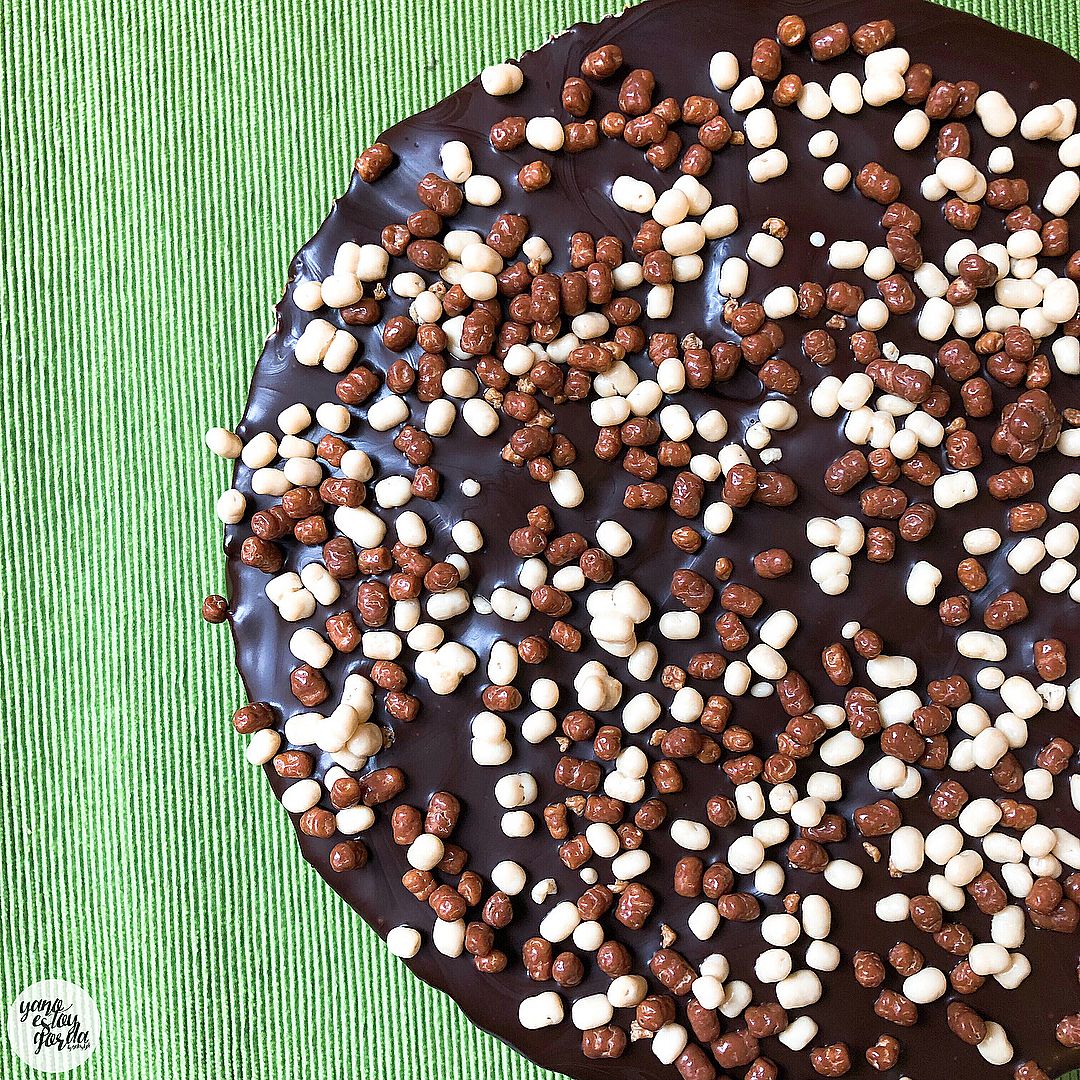 - Derretimos al baño maria la tableta de cacao puro y la vertemos encima de la tarta.