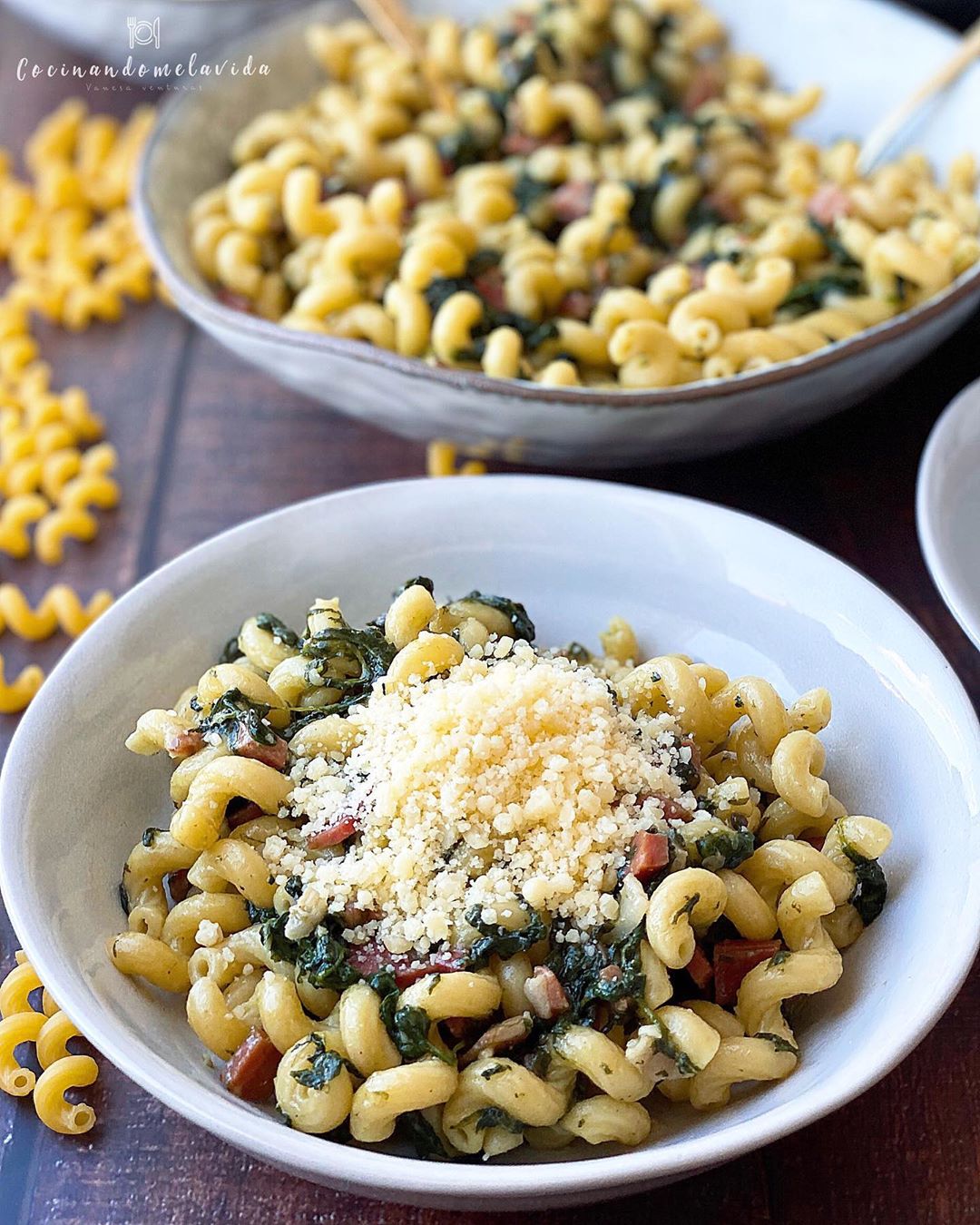 - ¡Listo! Ya tenemos nuestra PASTA CON ESPINACAS Y JAMÓN