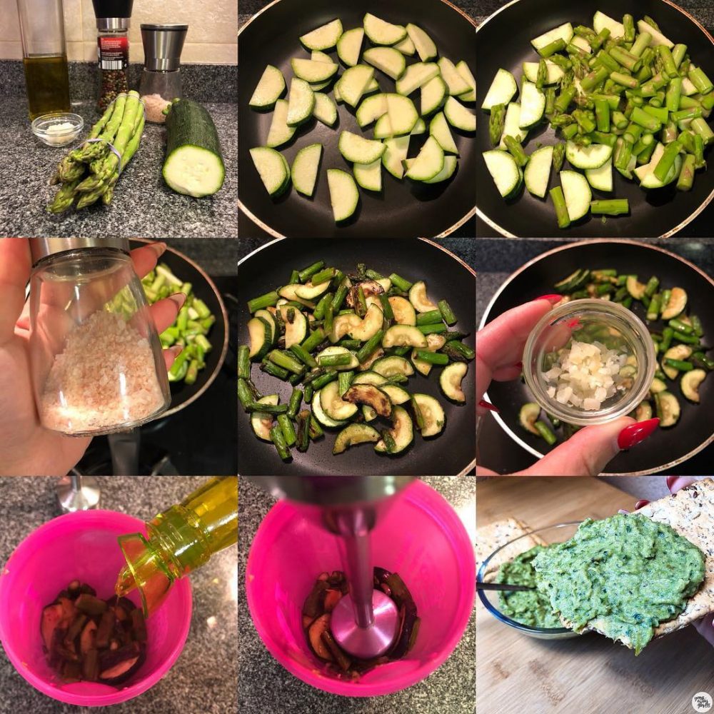 1 Manojo de espárragos trigueros gordos o 2 finos • 1/2 Calabacín • 2 Ajos • Sal rosa del Himalaya • Pimienta • Chorrito de aove RECOMENDACIÓN DEL DÍA: Bebida de colágeno vegana
