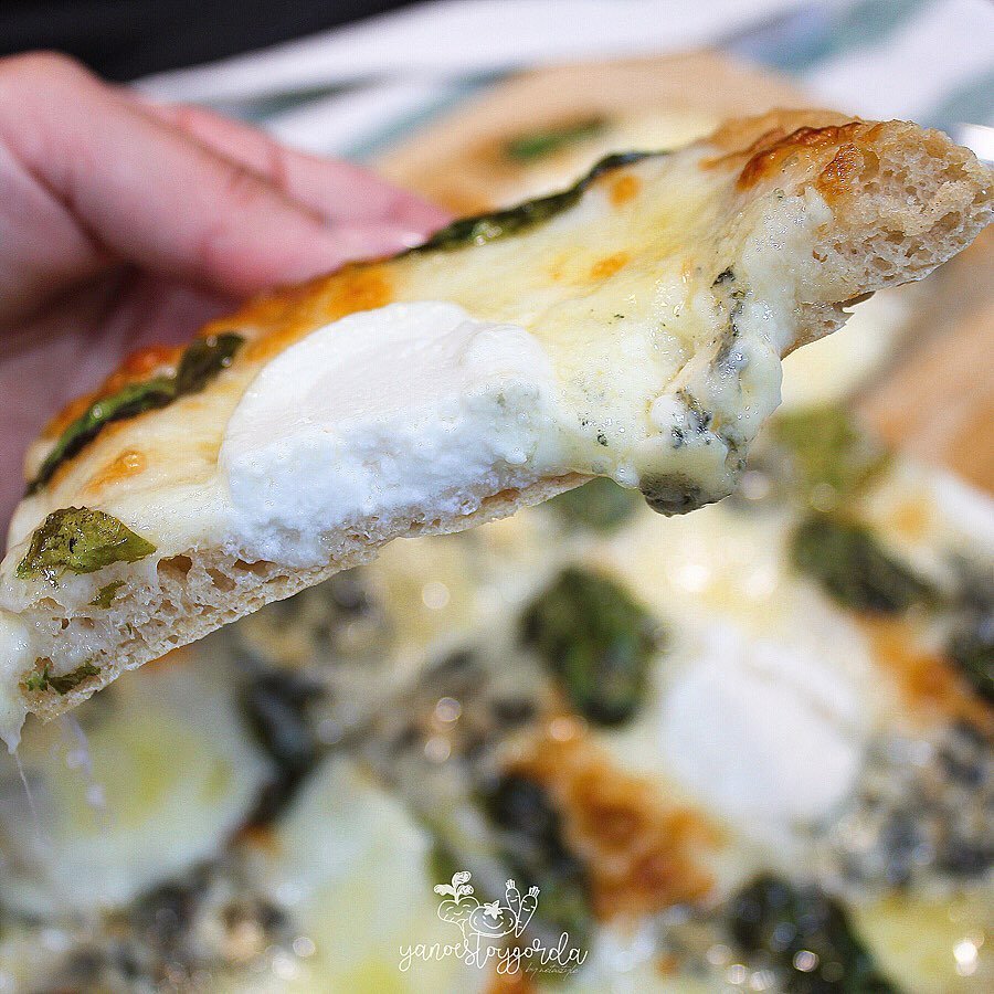 - ¡Listo! Ya podemos disfrutar de nuestra PIZZA BIANCA CON ESPINACAS Y 4 QUESOS