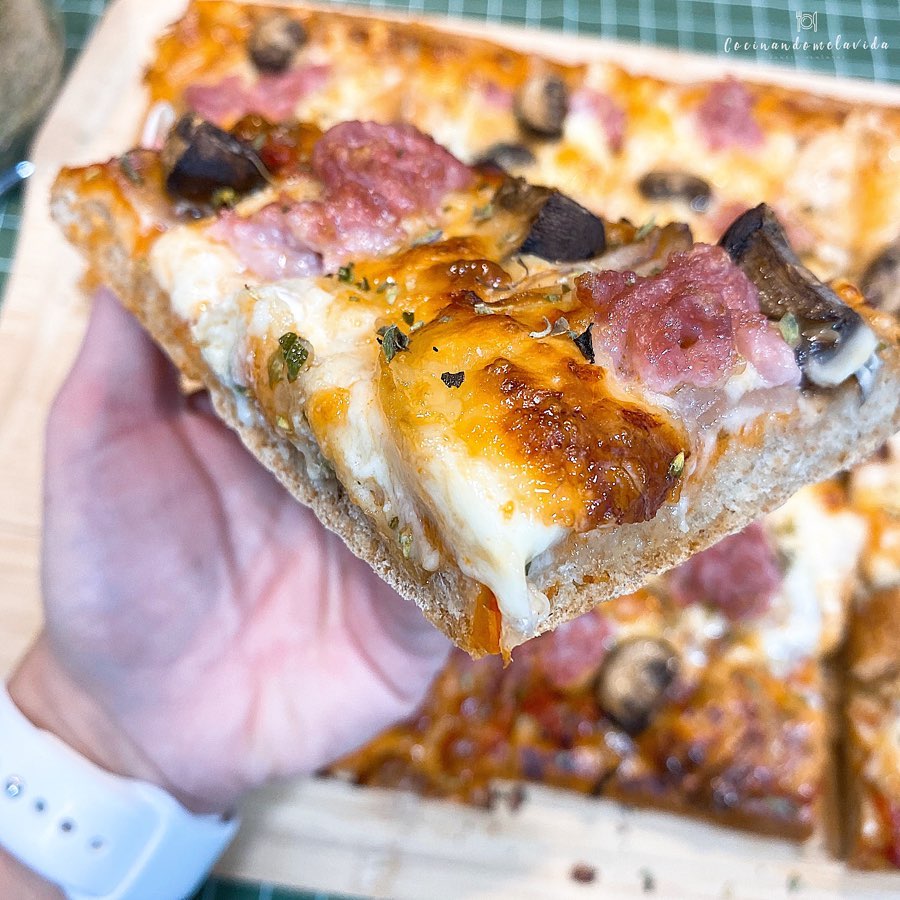 - Horneamos de nuevo 10-15min a 180grados o en función pizza gruesa con vapor 16min en el horno