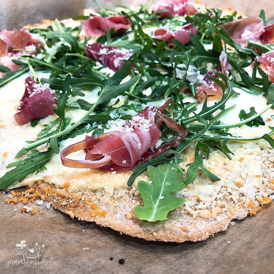 - ¡Listo! Ya tenemos nuestra Pizza de espelta con rúcula y jamón