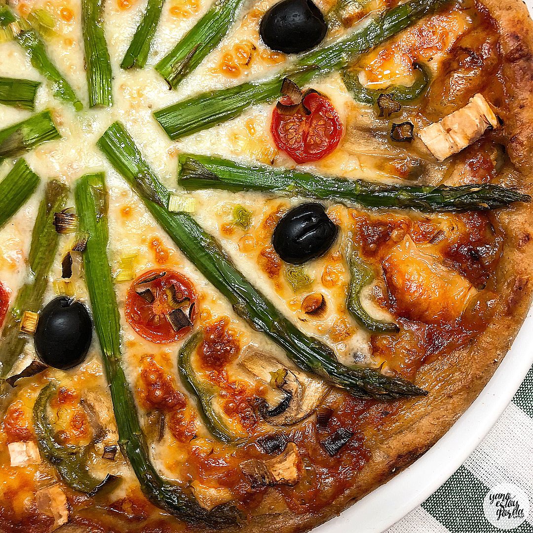 Pizza de espelta integral con espárragos