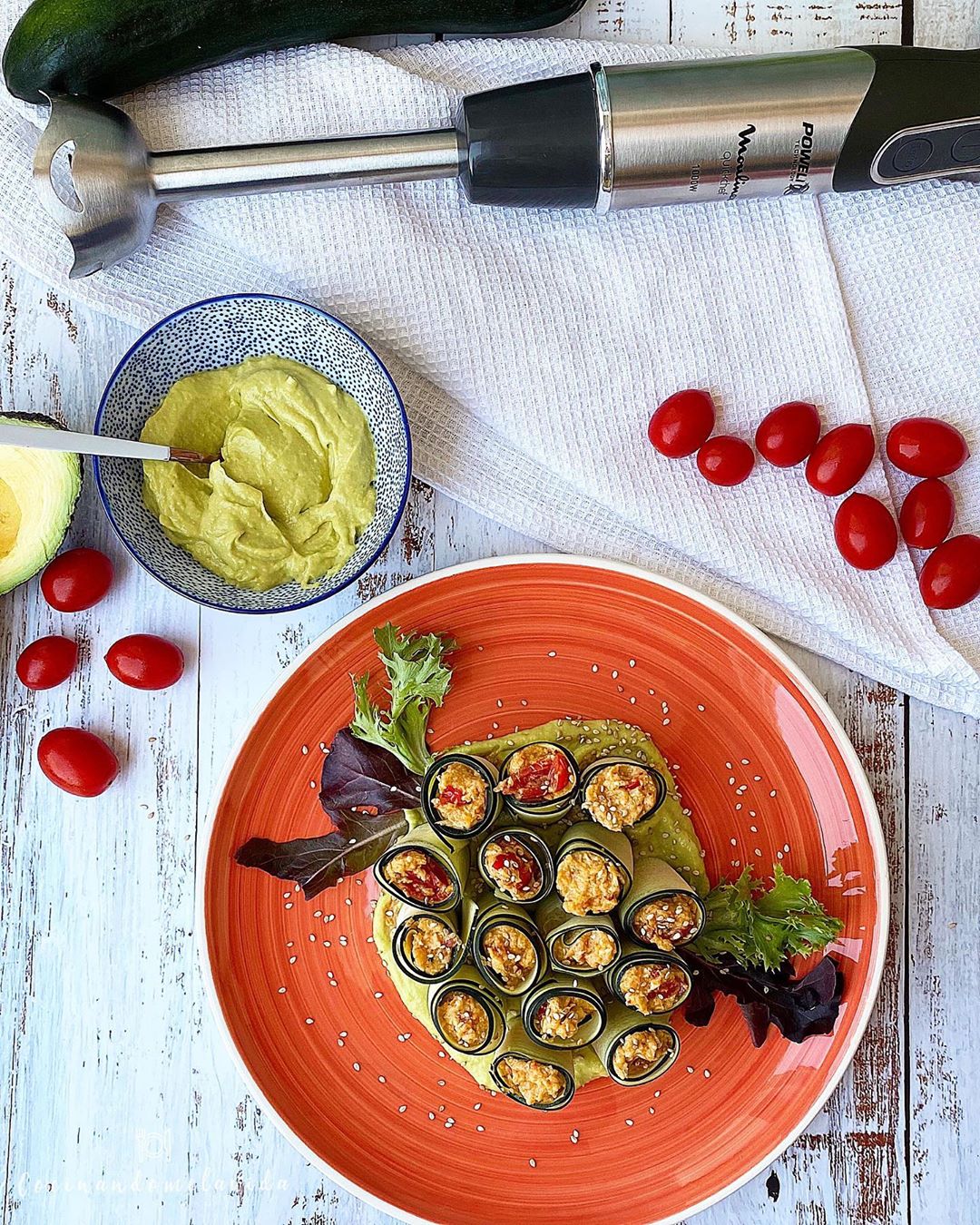 ROLLITOS DE CALABACÍN CON SALMÓN Y MAYONESA DE AGUACATE