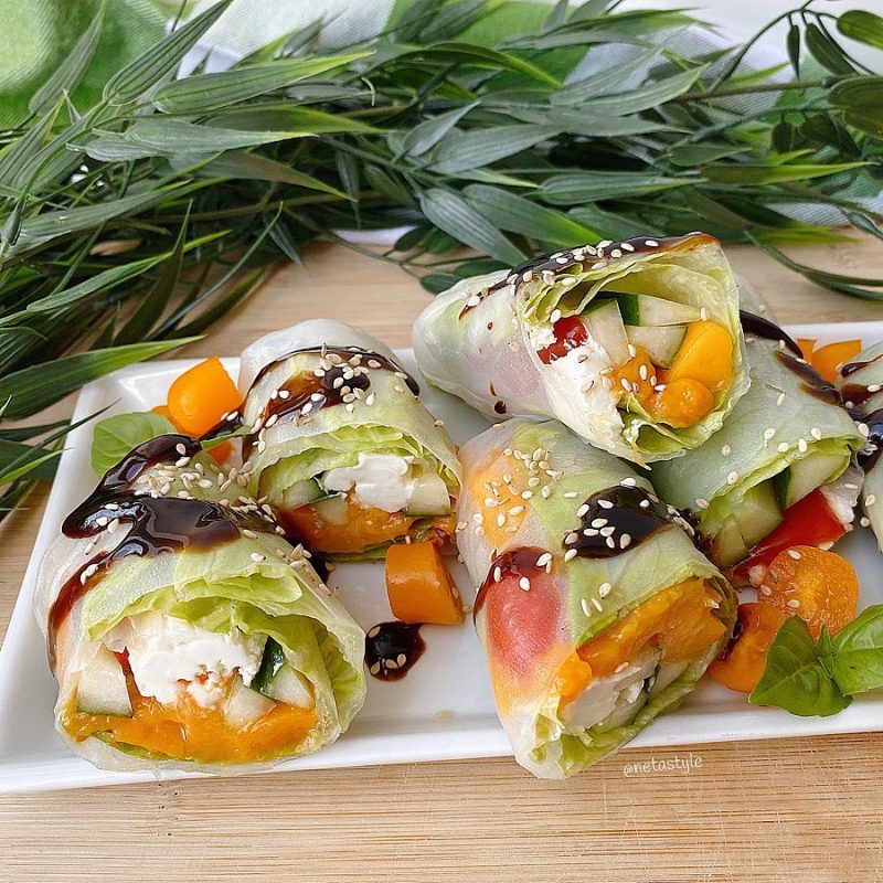ROLLITOS VIETNAMITAS CON QUESO DE CABRA Estos son los ingredientes que necesitas: 3-4 obleas de arroz Queso de cabra 1/2 Pepino 1 Mango maduro de Fruit 1 Tomate Lechuga romana Salsa de soja Semillas de sésamo Proceso: Pelamos y cortamos…