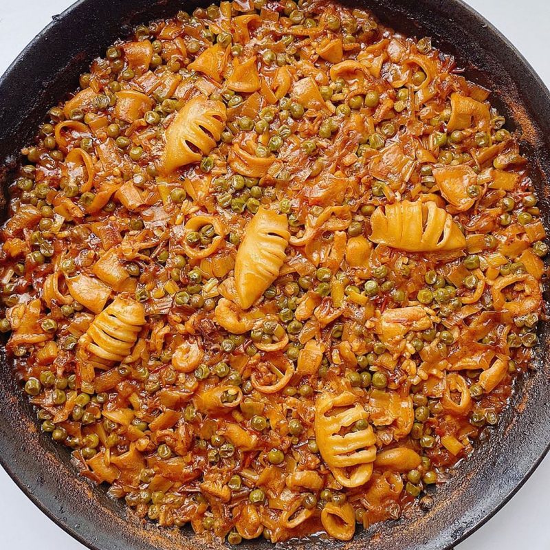 ARROZ CON CALAMARES Estos son los ingredientes que necesitas: 200g de arroz redondo 600ml de caldo de pescado 800g de calamares limpios 1 puñado de ajos tiernos 2 cebollas 1 puñado de guisantes congelados 2 Dientes de ajo 2/3 Cucharadas…