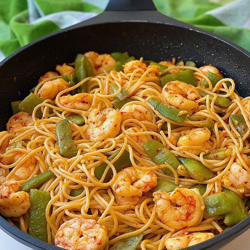 ESPAGUETIS CON JUDÍAS Y GAMBONES