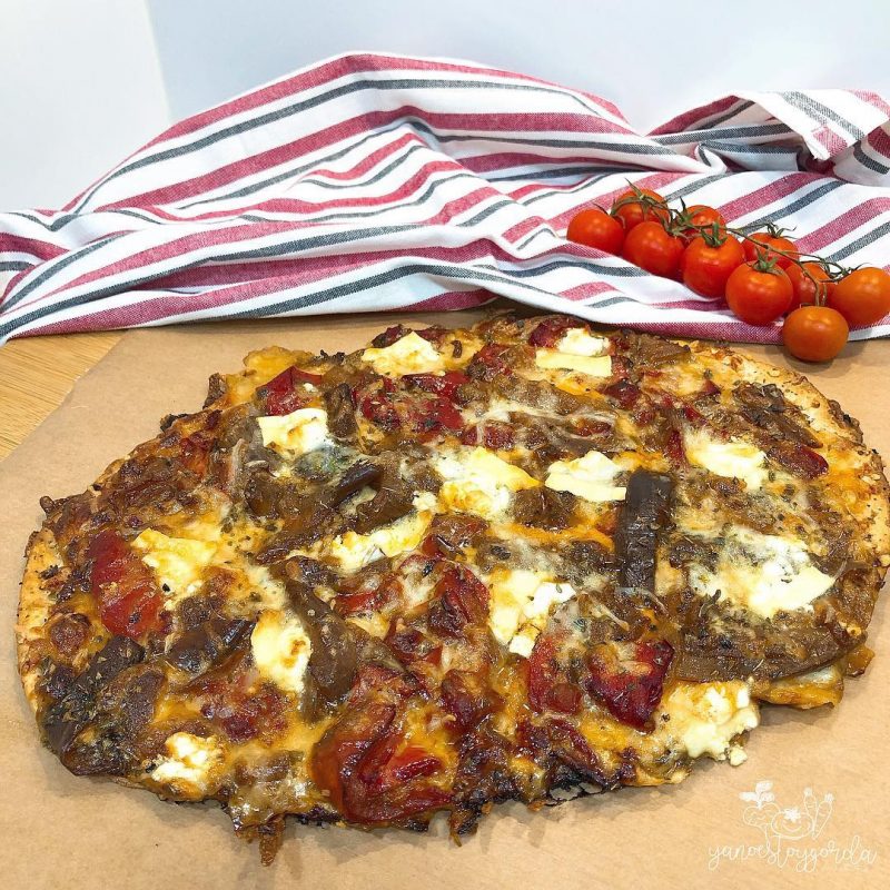 PIZZA INTEGRAL CON VERDURAS ASADAS Y QUESO DE CABRA