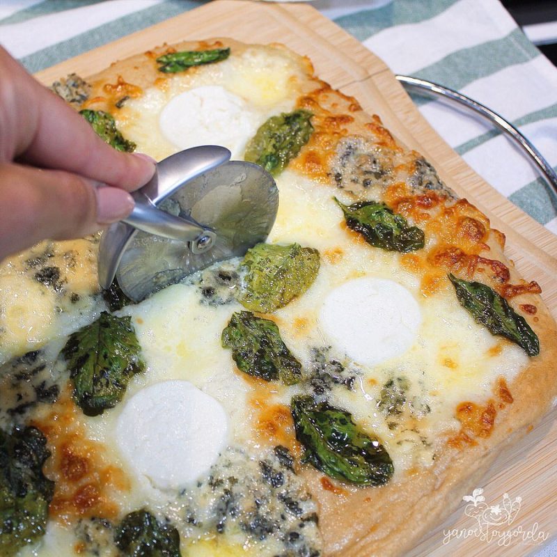 PIZZA BIANCA CON ESPINACAS Y 4 QUESOS Estos son los ingredientes que necesitas: 250g de harina de espelta de fuerza 1 cubo de levadura fresca 1 cucharadita de sal rosa del Himalaya 2 cucharadas de cebolla en polvo 20ml de…