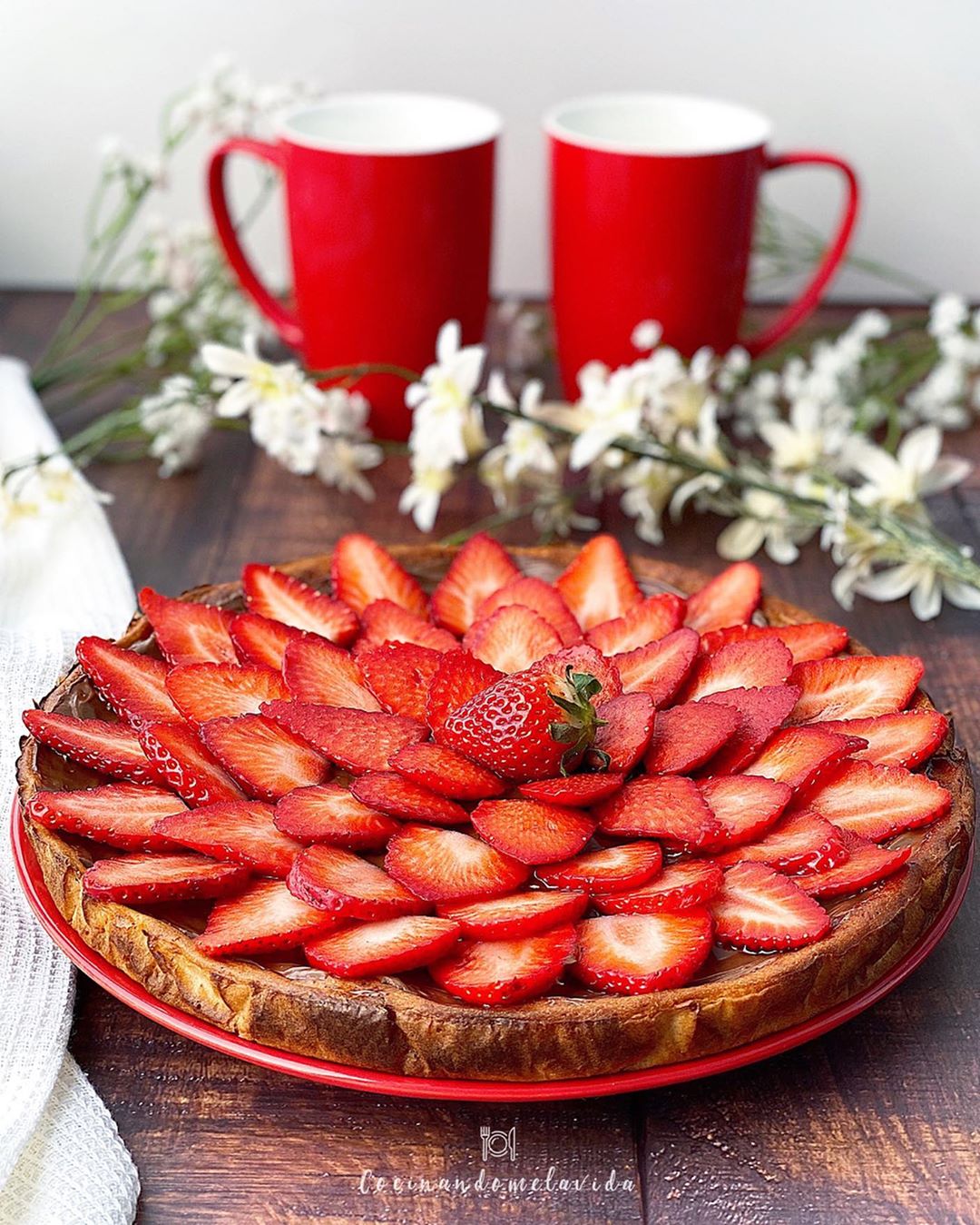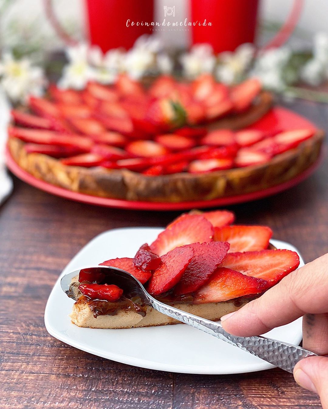 TARTA DE QUESO Y FRESAS CON CHOCOLATE
