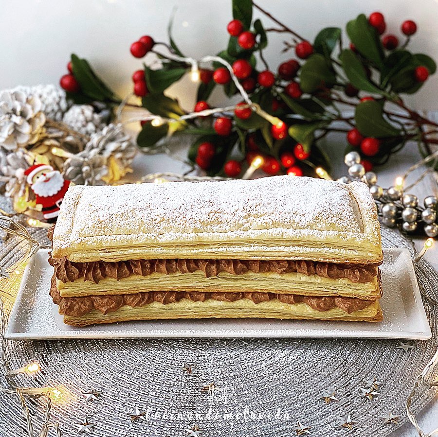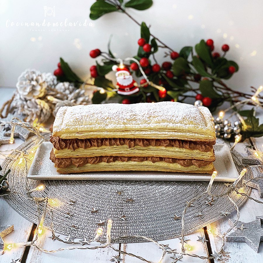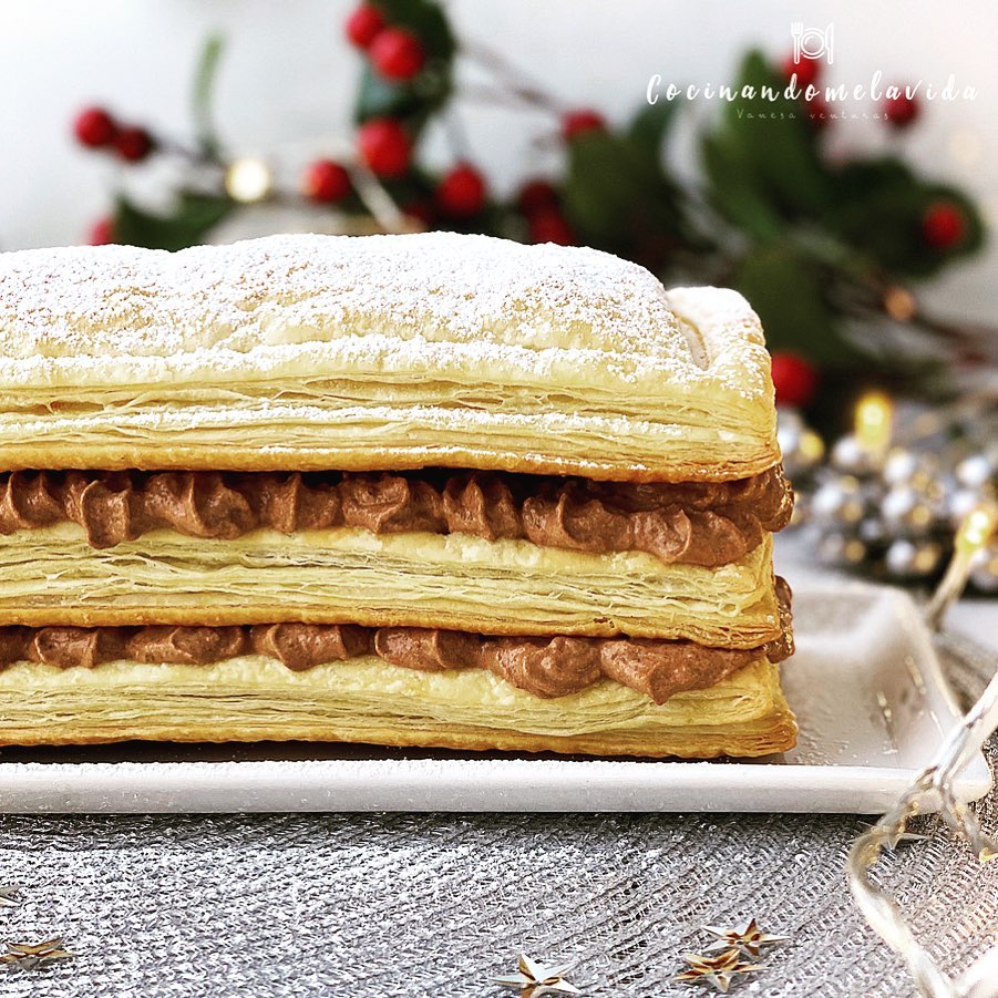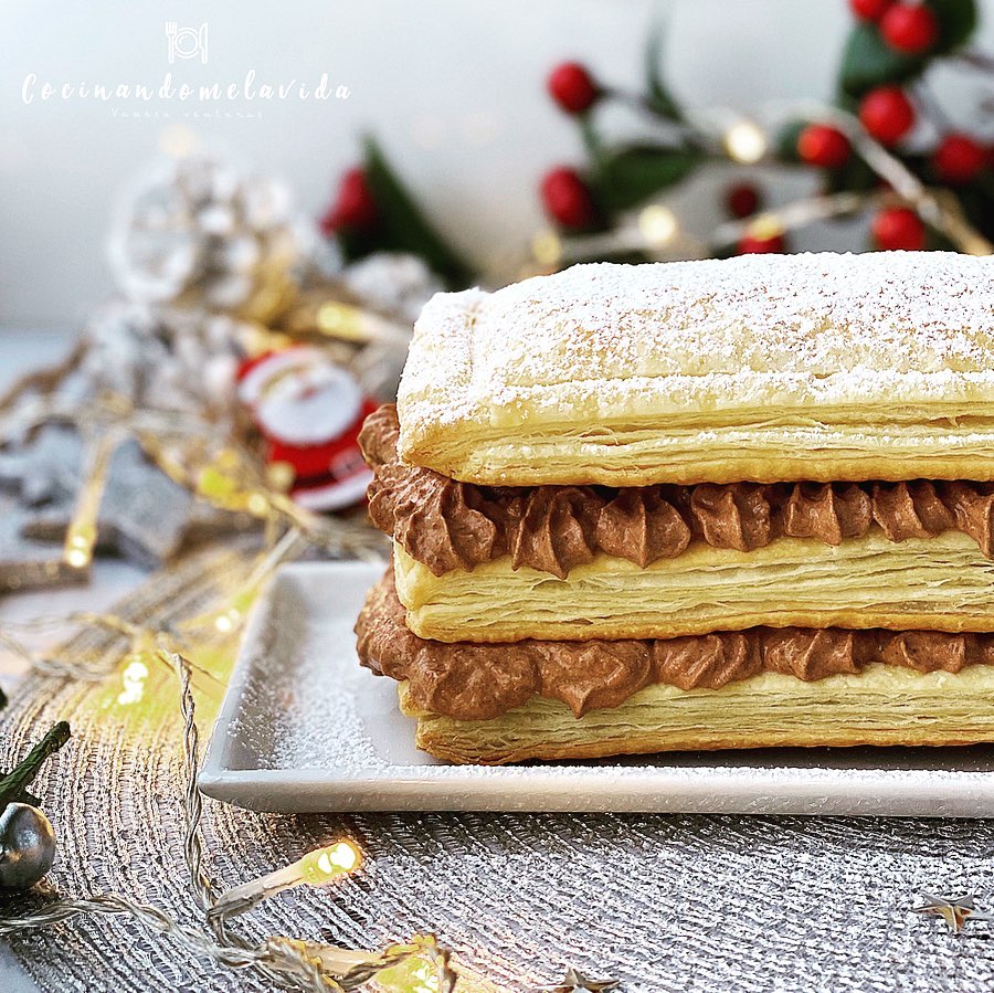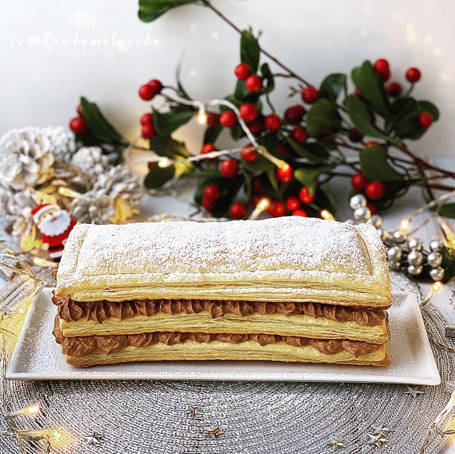 - Base de hojaldre, relleno de chocolate y otra capa de hojaldre (así hasta terminar)